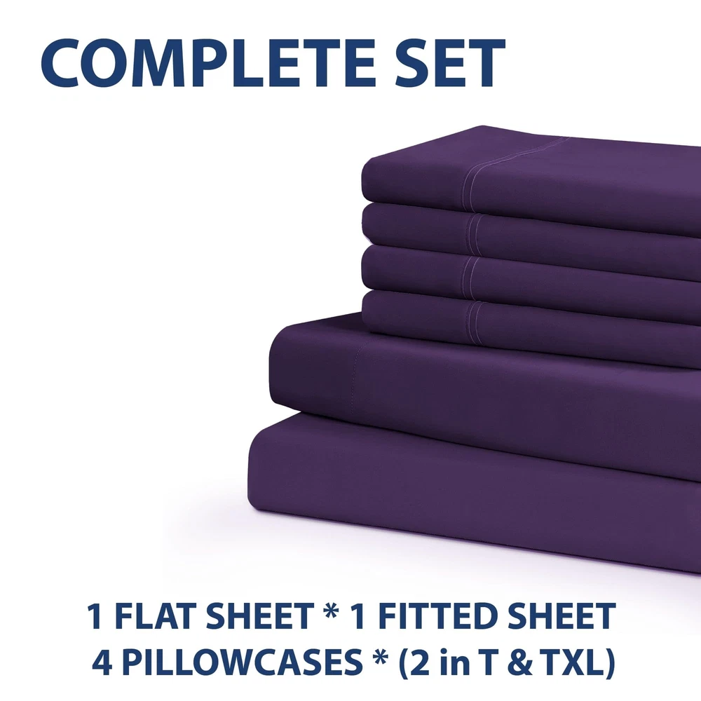 Micro-Caress Luxurious sheet set with 1 BONUS pillow case. Luxuriously soft, 4 piece 100% twill weave microfiber sheets and pillow cases for a totally comfortable sleep. The 90gsm fabrication is extremely soft; doesn't when washed, dries quickly; is free and durable. The flat sheet is 66"x96"; fitted sheet 39"x75" with 14" deep pocket to accommodate most mattresses and keep it snug for your sleep. Pillow cases are 20"x30" standard size. Twin size, Gray color. Luxury Soft 100% Microfiber Easy Care Wash, Tumble Dry Resistant and Durable Bonus Pillow Cases