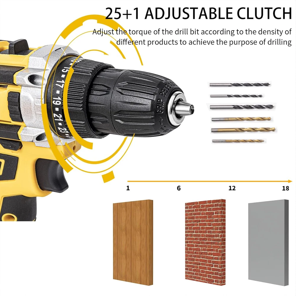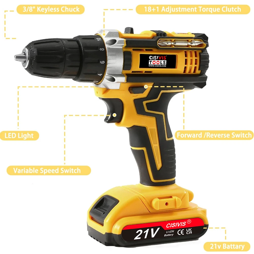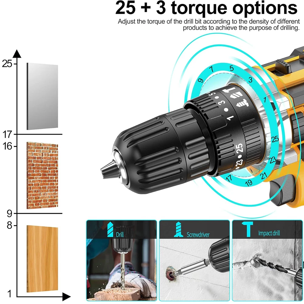 Electric Cordless Drill 21V Adjustable Drill Driver Set Battery Home US Stock