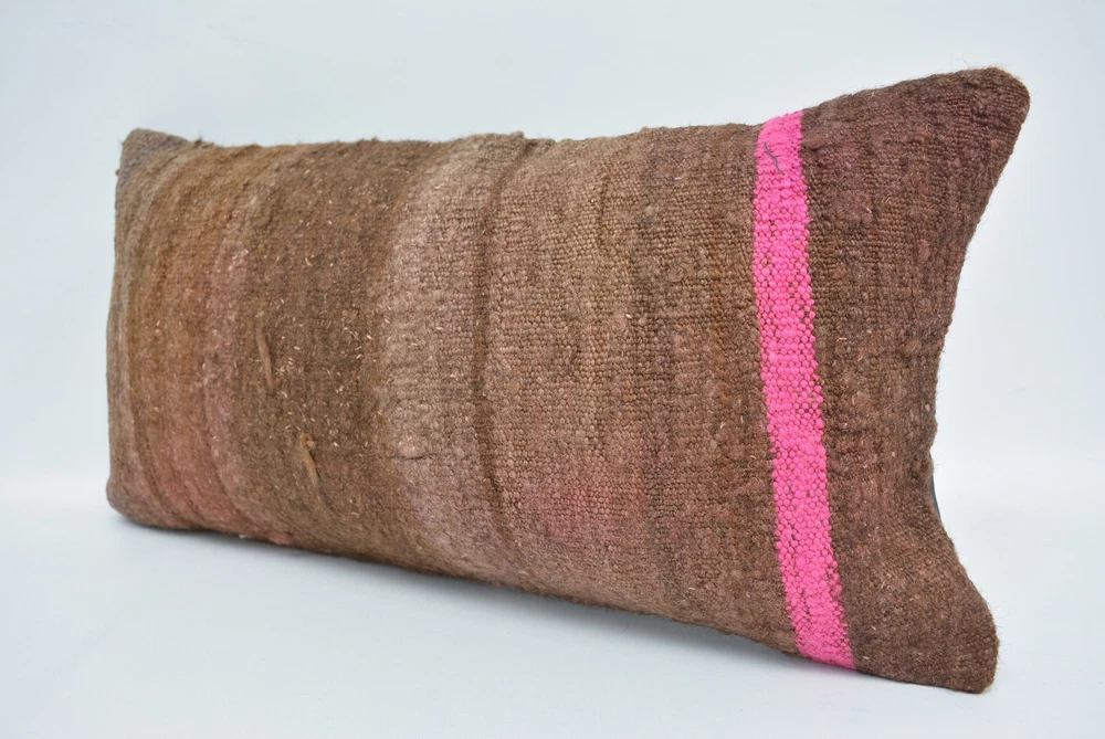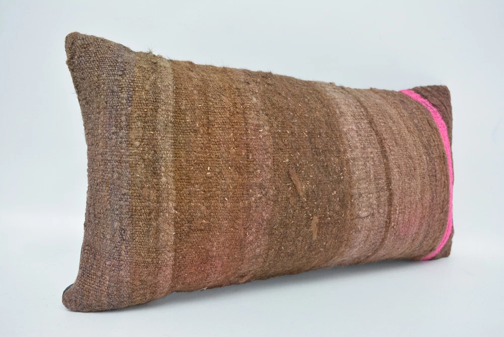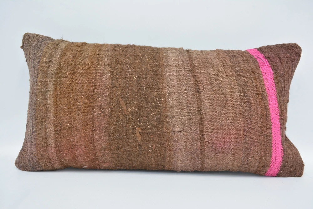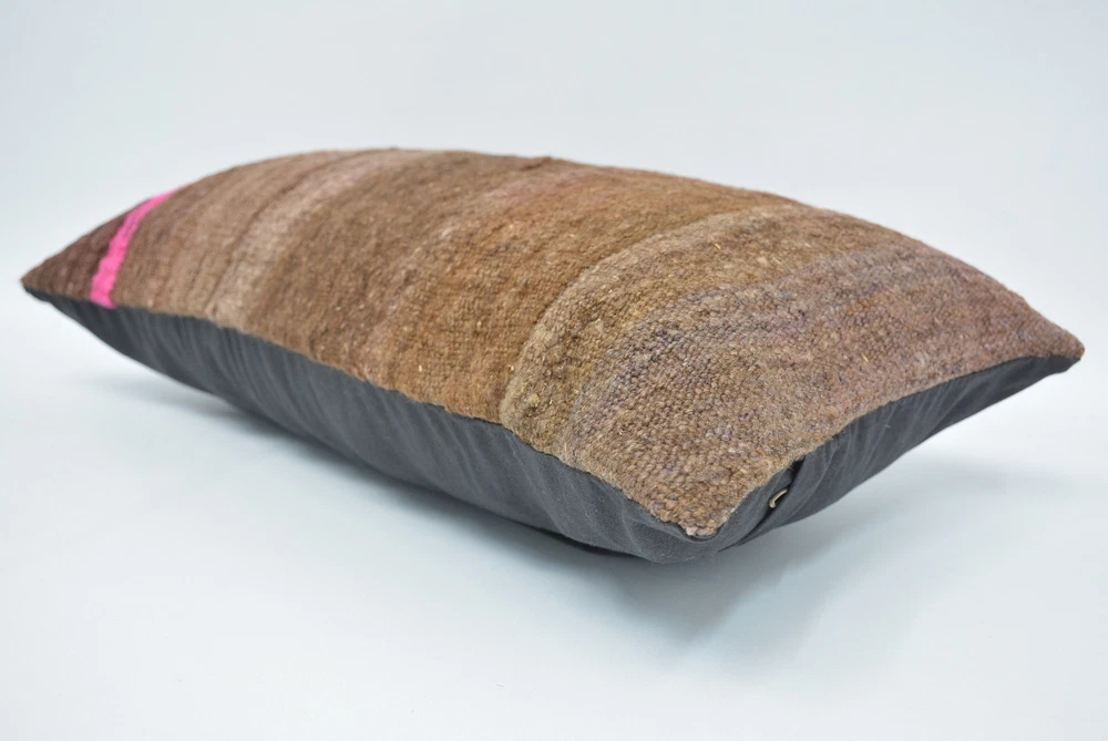 Home Decor Pillow, Designer Pillows, Kilim Pillow, 12"x24" Brown Pillow Case