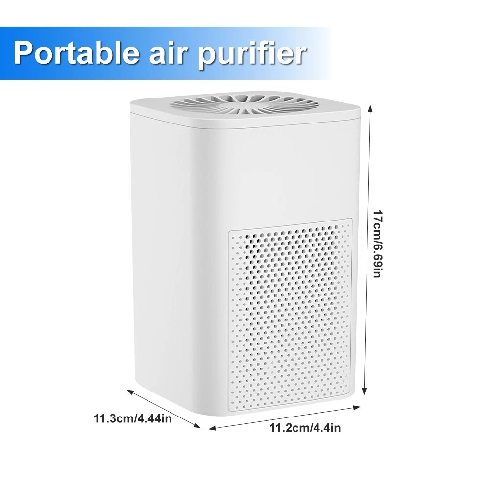 Specifications: Type: Portable air purifier Color: Elegant white (activated carbon basic model) Function: Formaldehyde removal Working principle: HEPA technology Air purifier airflow: 51-150 cubic meters/hour Usage environment: Home, office, car Applicable area: 10㎡ (incl.) - 40㎡ (incl.) Filter Type: Composite Filter Suitable for: Allergy-prone individuals, smokers, pet households, infants and toddlers, office environments Noise Level: Below 36 dB Power Source: USB Control Method: Mechanical Suitable Scenarios: Home use, office, desktop, etc. Housing Material: ABS Package included: 1 x Air purifier (includes 2 black nano-fiber filters) 1 x USB data cable (the data cable is attached to the unit) 1 x English manual