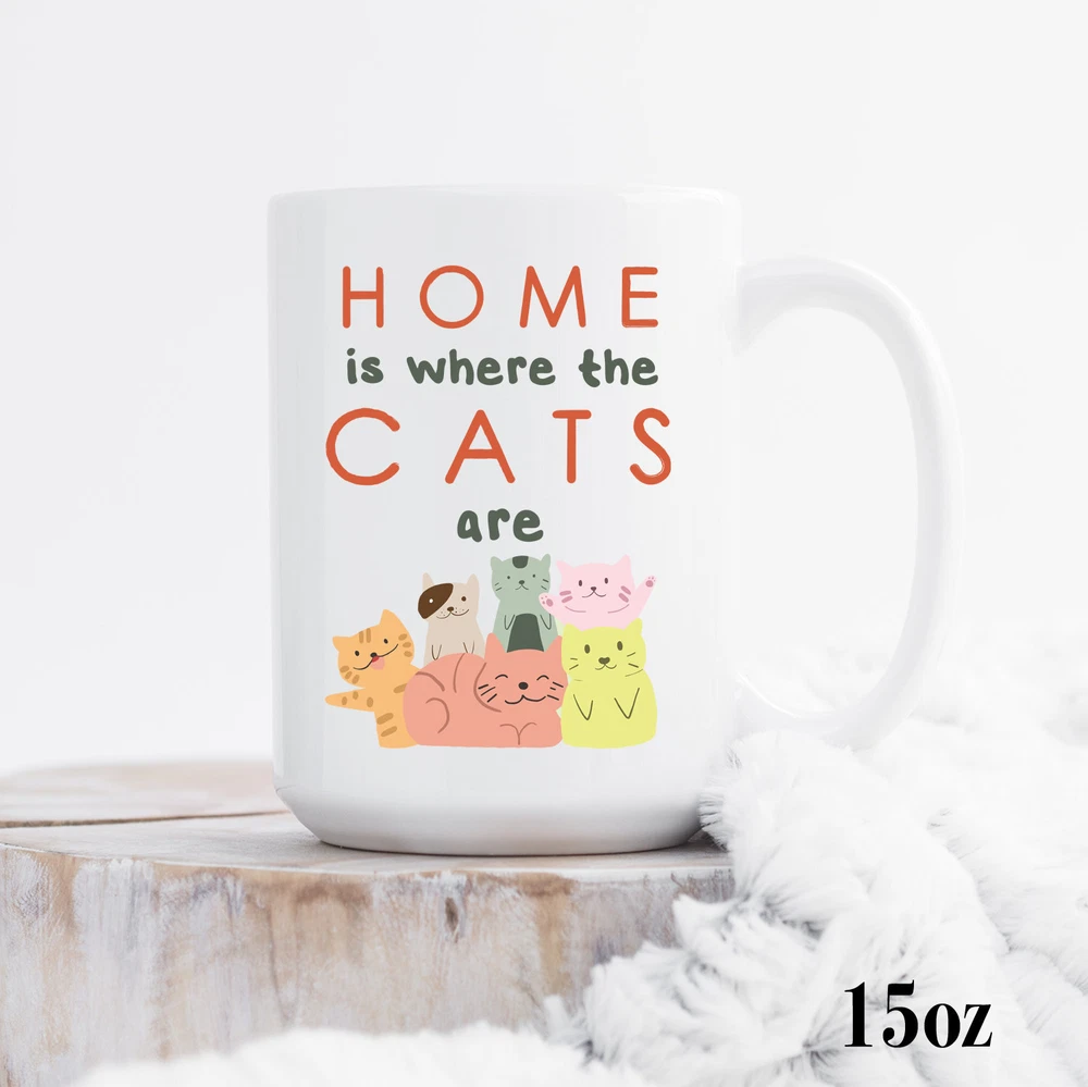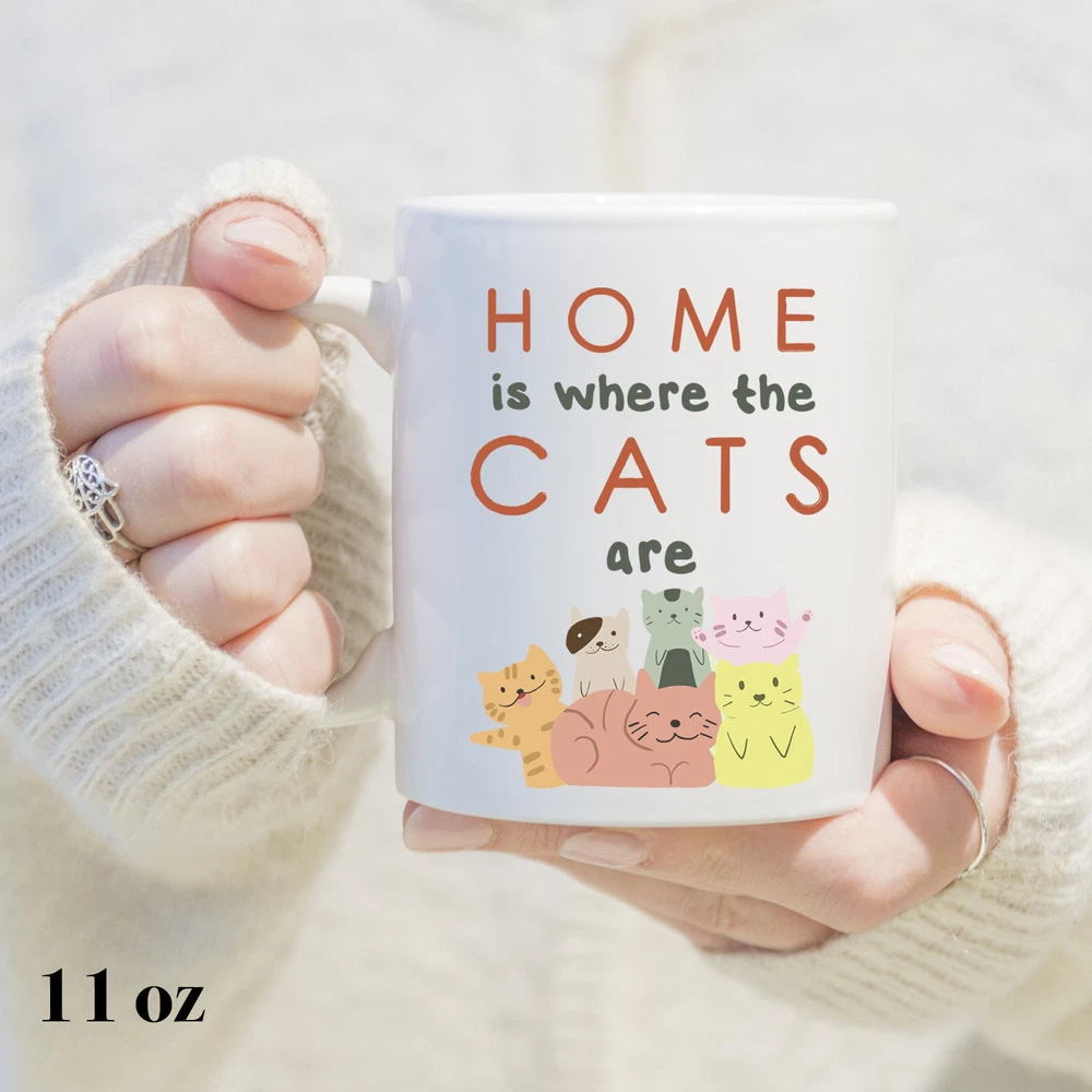 Home Is Where Cats Are Mug Cat Mug Cat Lover Gift Cat Coffee Mug Cat Gift Funny Product Details.. This high quality 11oz. ceramic white mug has a premium hard coat that provides crisp and vibrant color reproduction sure to last for years. Perfect for all hot & cold beverages. The highest quality printing possible is used. It will never fade no matter how many times you wash it. Material: 100% Ceramic. Print both sides. Dishwasher and Microwave Safe. High Gloss + Premium White Finish. Printed in the U.S.A. Personalized & Custom. We support personalized and custom mug to add custom, when placing an order, you can add notes to the "order note" in shipping address section. Also you can contact us directly via message. Shipping Info. Ready to ship in 1 to 2 business days, All products are made-to-order and proudly printed in the United States. Shipped by USPS and DHL, You will receive your order in 5-7 days. Replace & Refund. All products are defective during shipping broken, chipped will be replaced free of charge. You are not satisfied with the product, we will refund 100% money to you. If any other issues arise, please do not hesitate to message, we would be more than happy to assist you.