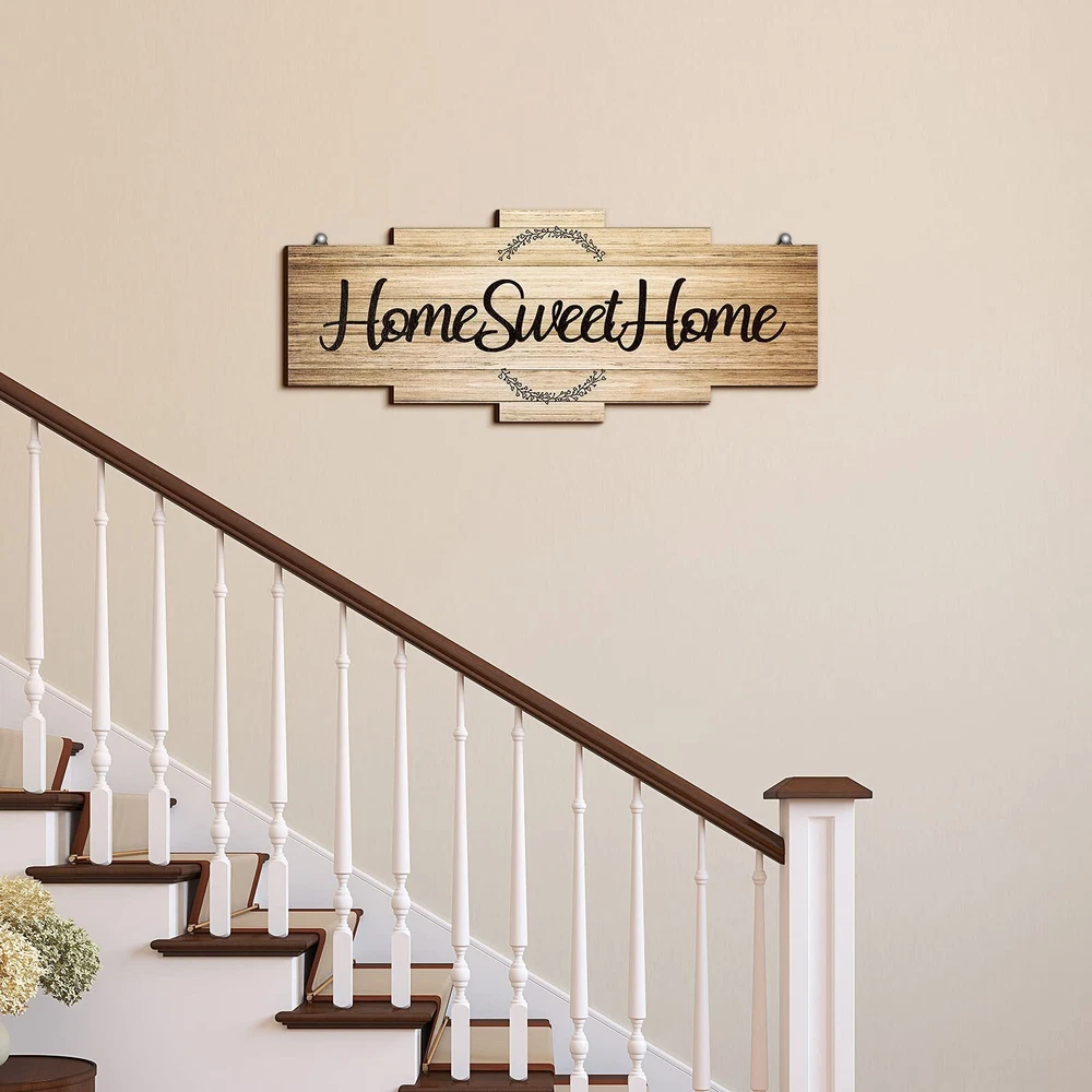 Features: Featuring rustic style and [Home Sweet Home] letters printing, this sweet home sign can be sent to your boyfriend or girlfriend, wife or husband, daughter or son, teacher or others you love as a sweet gift on birthday, New Year, Thanksgiving, etc. The back of this wall art sign is intimately designed with 2 hooks, which is suitable for living room, bedroom, kitchen, office, hotel, dining room, bathroom, bar decor, etc., which will produce a cute decoration effect and make your home look warm and elegant. Specifications: Material: wood Size: approx. 40 x 16 cm/ 15.7 x 6.3 inches Thickness: approx. 5 mm/ 0.2 inches Color: as pictures shown Package includes: 1 x Home sweet home sign Warm notes: Please allow slight size errors due to manual measurement. The colors may be slightly different from pictures due to different screens. What You Will Receive: you will receive 1 piece home sweet home sign decor, which is printed with letters of [Home Sweet Home], and the sign comes with beautiful design and an irregular polygon, which looks delicate and warm, creating a full family atmosphere Durable to Use: made of quality wood that is close to nature, the wood home sign is safe and reliable, odorless and not easy to get corroded or broken, you can keep it for a long time as an exquisite home decor, making your home look modern and graceful Appropriate Size: the wood wall sign is approx. 40 x 16 cm/ 15.7 x 6.3 inches, and the thickness is approx. 5 mm/ 0.2 inches; The size of the letter and the wooden board are nicely combined to add an elegant touch to your home Heartwarming Gift: featuring rustic style and [Home Sweet Home] letters printing, this sweet home sign can be sent to your boyfriend or girlfriend, wife or husband, teacher or others you love as a sweet gift on birthday, New Year, Thanksgiving, etc Applicable Occasions: the back of this wall sign is intimately designed with 2 hooks, which is suitable for living room, bedroom, kitchen, office, hotel, dining room, bathroom, bar decor, etc., which will produce a cute decoration effect and make your home look warm and elegant
