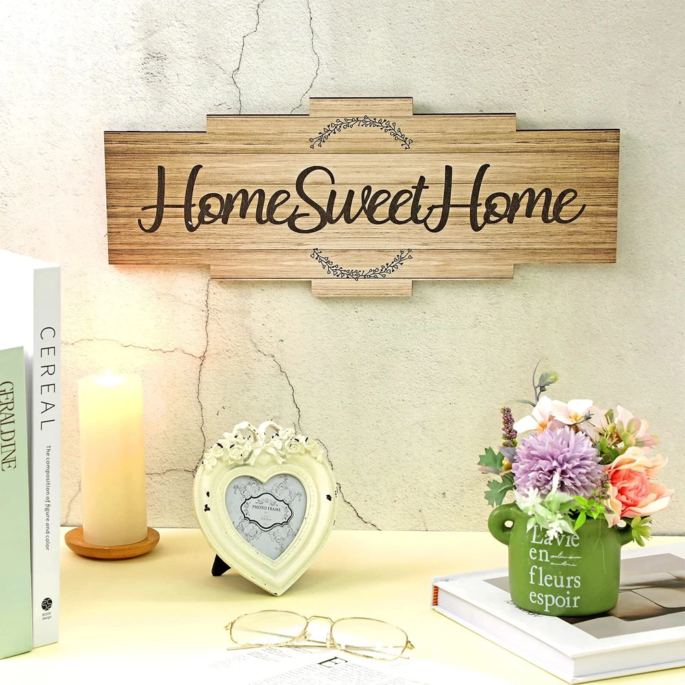 Features: Featuring rustic style and [Home Sweet Home] letters printing, this sweet home sign can be sent to your boyfriend or girlfriend, wife or husband, daughter or son, teacher or others you love as a sweet gift on birthday, New Year, Thanksgiving, etc. The back of this wall art sign is intimately designed with 2 hooks, which is suitable for living room, bedroom, kitchen, office, hotel, dining room, bathroom, bar decor, etc., which will produce a cute decoration effect and make your home look warm and elegant. Specifications: Material: wood Size: approx. 40 x 16 cm/ 15.7 x 6.3 inches Thickness: approx. 5 mm/ 0.2 inches Color: as pictures shown Package includes: 1 x Home sweet home sign Warm notes: Please allow slight size errors due to manual measurement. The colors may be slightly different from pictures due to different screens. What You Will Receive: you will receive 1 piece home sweet home sign decor, which is printed with letters of [Home Sweet Home], and the sign comes with beautiful design and an irregular polygon, which looks delicate and warm, creating a full family atmosphere Durable to Use: made of quality wood that is close to nature, the wood home sign is safe and reliable, odorless and not easy to get corroded or broken, you can keep it for a long time as an exquisite home decor, making your home look modern and graceful Appropriate Size: the wood wall sign is approx. 40 x 16 cm/ 15.7 x 6.3 inches, and the thickness is approx. 5 mm/ 0.2 inches; The size of the letter and the wooden board are nicely combined to add an elegant touch to your home Heartwarming Gift: featuring rustic style and [Home Sweet Home] letters printing, this sweet home sign can be sent to your boyfriend or girlfriend, wife or husband, teacher or others you love as a sweet gift on birthday, New Year, Thanksgiving, etc Applicable Occasions: the back of this wall sign is intimately designed with 2 hooks, which is suitable for living room, bedroom, kitchen, office, hotel, dining room, bathroom, bar decor, etc., which will produce a cute decoration effect and make your home look warm and elegant