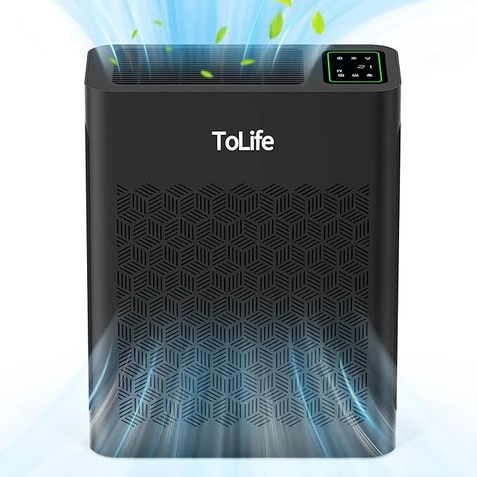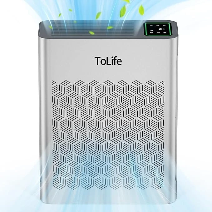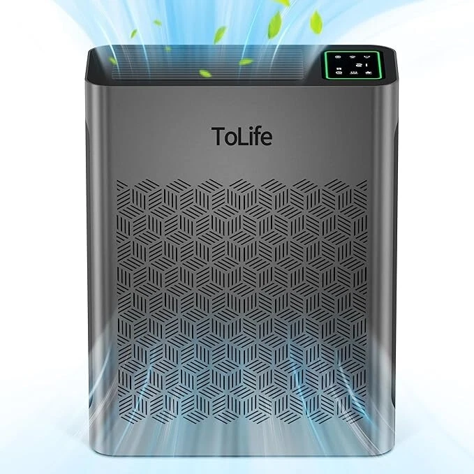 Air Purifiers for Home Large Room Up to 1295 Ft² with PM 2.5 Display Air Quality Sensor, Auto Mode, Timer, HEPA Air Purifier for Bedroom Filters Smoke, Pollen, Pet Dander, Allergies, White About this item The air purifier comes with a filter EFFICIENT H13 PURIFICATION: The air purifier has a powerful filtration system that can remove particles as small as 0.3 microns, including dust and pollen. It can cover up to 1295 sq ft / 120.3 m² and refresh the air in a room every hour SMART AIR PURIFIER: This air purifier has a real-time air quality indicator that shifts from green to yellow or red, automatically adjusting the fan speed. Green means good air quality (low speed), yellow indicates moderate (medium speed), and red signals poor air quality (high speed) ULTIMATE SLEEPING EXPERIENCE: You can choose a low fan speed or the automatic mode according to your preference while sleeping. The lights can be turned off, and the machine runs quietly, ensuring that your beautiful dreams are not disturbed TIMER FUNCTION AND CYCLE TIMER FUNCTION: This product features timer settings for 2, 4, 6, and 8 hours. A long press on the timer button activates a recurring timer, enabling the air purifier to start daily at the same time and turn off after the set duration This Tolife Fresh Air Living HEPA Air Purifier is designed for large rooms up to 1295 square feet. It features True HEPA and Pre-Filter filtration technology to capture allergens, dust, and pollen. The Plug-In unit in gray ABS material operates quietly and is suitable for whole room use in various spaces like bedrooms and living rooms. It effectively removes smoke, mold, odors, and other contaminants for cleaner indoor air. On Jan 13, 2025 at 00:49:41 PST, seller added the following information: