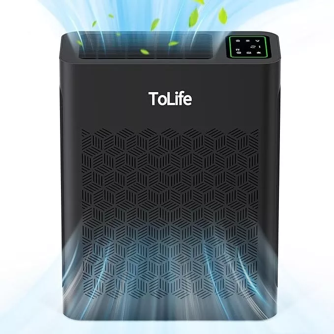 Air Purifiers for Home Large Room Up to 1295 Ft² with PM 2.5 Display Air Quality Sensor, Auto Mode, Timer, HEPA Air Purifier for Bedroom Filters Smoke, Pollen, Pet Dander, Allergies, White About this item The air purifier comes with a filter EFFICIENT H13 PURIFICATION: The air purifier has a powerful filtration system that can remove particles as small as 0.3 microns, including dust and pollen. It can cover up to 1295 sq ft / 120.3 m² and refresh the air in a room every hour SMART AIR PURIFIER: This air purifier has a real-time air quality indicator that shifts from green to yellow or red, automatically adjusting the fan speed. Green means good air quality (low speed), yellow indicates moderate (medium speed), and red signals poor air quality (high speed) ULTIMATE SLEEPING EXPERIENCE: You can choose a low fan speed or the automatic mode according to your preference while sleeping. The lights can be turned off, and the machine runs quietly, ensuring that your beautiful dreams are not disturbed TIMER FUNCTION AND CYCLE TIMER FUNCTION: This product features timer settings for 2, 4, 6, and 8 hours. A long press on the timer button activates a recurring timer, enabling the air purifier to start daily at the same time and turn off after the set duration This Tolife Fresh Air Living HEPA Air Purifier is designed for large rooms up to 1295 square feet. It features True HEPA and Pre-Filter filtration technology to capture allergens, dust, and pollen. The Plug-In unit in gray ABS material operates quietly and is suitable for whole room use in various spaces like bedrooms and living rooms. It effectively removes smoke, mold, odors, and other contaminants for cleaner indoor air. On Jan 13, 2025 at 00:55:45 PST, seller added the following information: