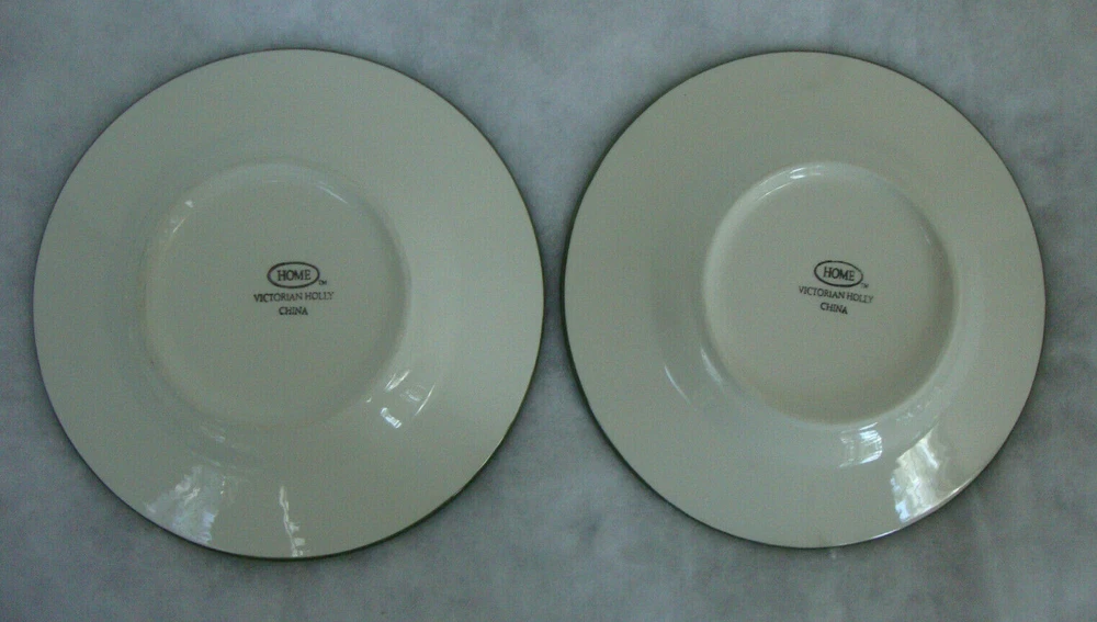Home Victorian Holly Salad Dessert Plates SET OF 2 - You will receive two plates. Size: About 8" diameter. CONDITION: No chips or cracks. Very mild utensil marks and light trim wear. Overall, excellent vintage condition. THIS LISTING IS SET UP FOR COMBINED SHIPPING DISCOUNTS IN CASE YOU WANT TO BUY MORE THAN ONE SET.