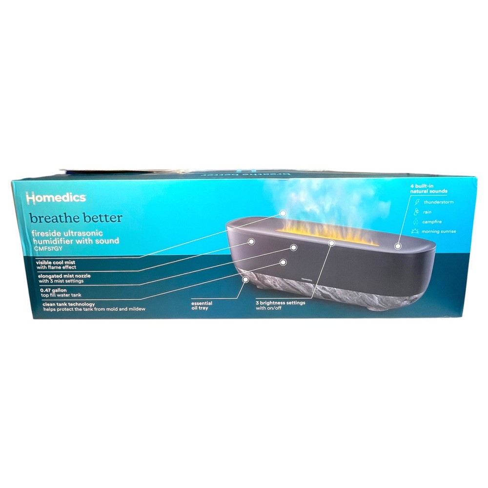 Homedics Fireside Ultrasonic Humidifier with Sound – Breathe Better – NEW Relax, refresh, and breathe easier with the Homedics Fireside Ultrasonic Humidifier , designed to create a soothing home environment. Its flame-effect lighting and natural sound options make it both functional and calming. 💧 Condition: Brand new in box – unopened and unused. 🔥 Flame Effect: Visible cool mist with gentle simulated firelight. 🌫️ Mist Control: Elongated nozzle with 3 mist settings for customized comfort. 🌿 Aromatherapy: Includes essential oil tray for optional fragrance use. 💡 Lighting: 3 brightness settings with on/off control. 🔊 4 Built-In Sounds: Thunderstorm, rain, campfire & morning sunrise. 🧺 Easy Fill & Clean: 0.47-gallon top-fill tank with Clean Tank technology. Bring warmth, moisture, and tranquility to any room with this stylish Homedics humidifier!