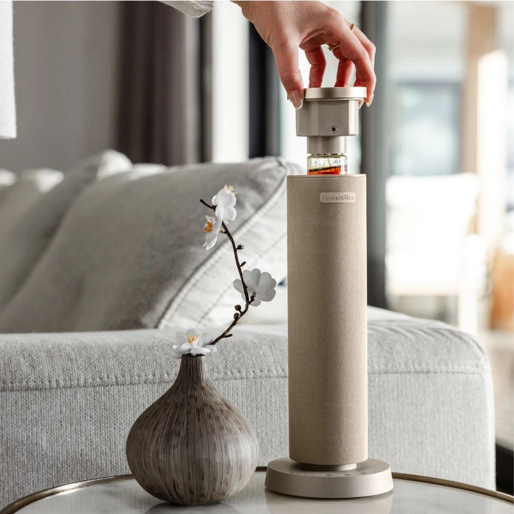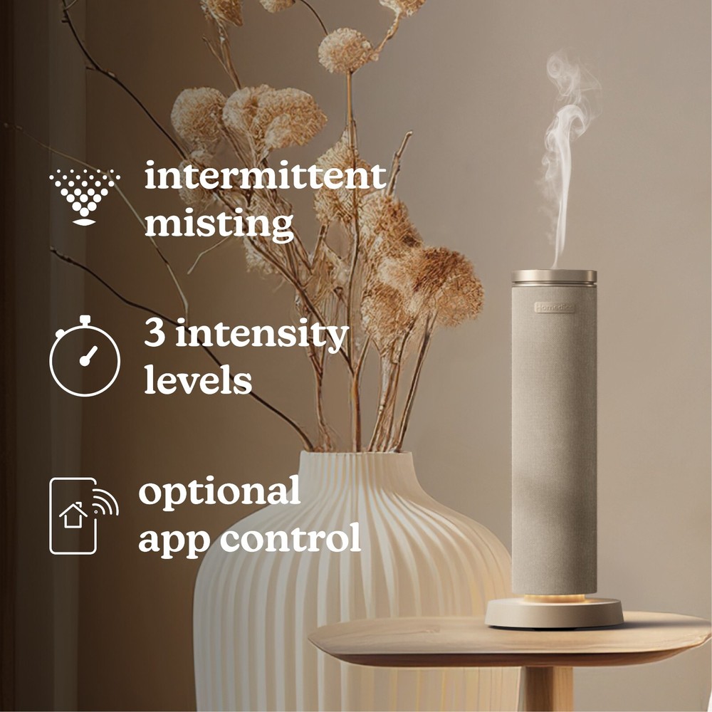 Homedics SereneScent ARMH‑972BE Fabric Diffuser Beige – New Open Box LED App USE WITH HOMEDICS SERENESCENT 120ML FRAGRANCE OILS NO WATER, NO HEAT, NO MESS: Enjoy the mess-free, waterless diffuser that gives you a scent for any larger space (bedrooms, living rooms, dining rooms, etc.). A revolutionary alternative to the traditional diffuser or candle, this is a safer way to bring set-and-forget fragrance to your home. AMAZING SMELLING HOME THE HEALTHY WAY: Most premium home fragrances, whether candles, plug-ins, or sprays, use synthetic chemicals in their formulation. SereneScent home fragrance oils (sold separately) are created with all natural ingredients for a premium mood-boosting layer to home decor. MAKE THE FRAGRANCE EXPERIENCE YOURS: Choose from 3 levels for a fragrance mist intensity that's exactly the way you want it. The waterless diffuser works using intermittent mist intervals with pauses to achieve the precise aroma level you desire. The unit does not mist continuously. The base control and app include scent intensity, timer, and lights for easy-to-use experience. LIGHTS FADE, FRAGRANCE CONTINUES: This SereneScent diffuser is designed to effortlessly blend in with your decor. Turn the lights on and enjoy the warm glow of ambient solid or breathing lights in white, red, blue, purple, green, or orange. CRAFTED WITH NATURAL INGREDIENTS: Use with Homedics SereneScent 120ml clean & natural home fragrance oils (sold separately) - certified up to 100% USDA biobased. Each scent carries a different sensory experience. Choose your favorite 120ml SereneScent bottle to easily refill the diffuser. PATENTED SCENT TECHNOLOGY: The premium fabric diffuser mists with lighter-than-air microdroplets to efficiently disperse ultra-fine luxurious fragrance throughout your space. Patented whisper-quiet air diffusion technology requires no water. WHAT'S IN THE BOX: (1) Homedics SereneScent Fabric Home Fragrance Diffuser, (1) Adapter with Power Cable