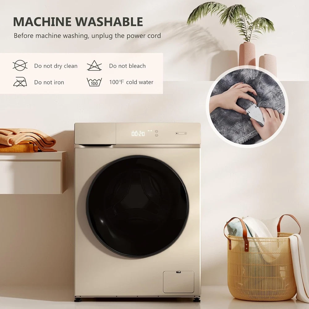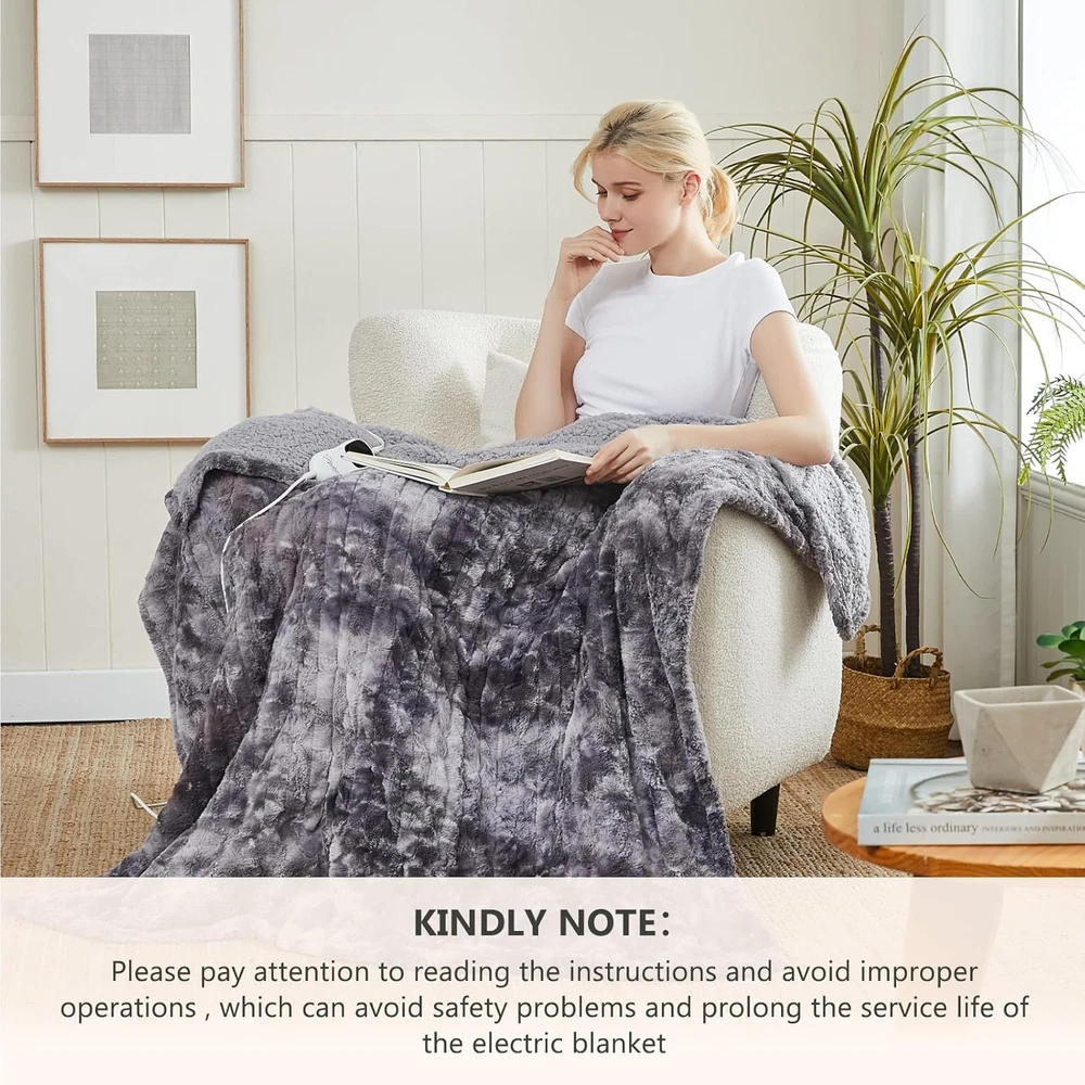 Store New Arrivals Add to Favorite View Feedback Contact Homemate Heated Blanket Electric Throw - 50X60 Heating Blanket Throw 5 Gears Auto-Off 10 Heat Levels Heat Blanket Over-Heat Protection Luxury Faux Fur Sherpa Heater Blanket Electric ETL Certification Description Item model number YZH-5060T Style Contemporary Number of Items 1 Pattern Solid Blanket Form Throw Blanket Theme Heated blanket Unit Count 1.0 Count Batteries required No Product Dimensions 50"L x 60"W Material 200gsm Flannel + 200gsm Sherpa Age Range (Description) Adult Seasons Winter Manufacturer Homemate Model Name YZH-5060T Water Resistance Level Not Water Resistant Fabric Type Sherpa、faux Fur Item Weight 3.52 pounds Fill Material 380gsm Faux rabbit Fur + 220gsm Sherpa Special Feature Flame Resistant Fabric Warmth Description Heavyweight Sport Camping Color Grey Recommended Uses For Product Napping Refill 380gsm Faux rabbit Fur + 220gsm Sherpa Included Components Controller, Power cord Brand Homemate Product Care Instructions Machine Wash Size 50"x60" Sherpa、faux Fur Premium Material: 380gsm Faux Fur + 220gsm sherpa. The fabric is very soft, thicker than normal blankets, and warmer than normal blankets even without electricity. The fabric is durable and does not shed. The diameter of the heating wire is 2.2 mm, and the existence of the heating wire is hardly felt during use, which is more comfortable Safety: Homemate heated blankets have passed the American safety UL964 Test. Have ETL Certification.Lower Electro Magnetic Radiation.The heating wire is designed and produced by Japanese company,more advanced technology,stronger insulation and flame resistance.Moreover,the heating blanket use NTC overheating protection technology to ensure that it will not overheat and cause burning. And our heating wire is longer, so the heating area is larger and the heat is more evenly distributed Eenergy Saving: Homemate heated throw blanket use the intelligent temperature adjustment technology. When the temperature rises, the portable heated blanket will automatically adjust the temperature according to the surrounding environment, which can always provide users with a comfortable feeling and is conducive to energy saving. Compared with air conditioner,using Homemate heated blanket is more energy efficient, and you can save more heating costs in winter Eesy to Use: Homemate heated blanket have 10 heat levels, 1h 2h 4h 6h 8h auto shut off. Temperature range is 86-122°F. There is only one button on the controller to control the temperature, very convenient to use, even the elderly, the sick, and the disabled can use it easily. Power cord is 12.5ft, this long cord makes the use of the warm blanket more flexible, can be used on the bed, on the sofa, can be used in the study and office, very convenient Notice: Homemate heated blanket is the best gift for birthday or other holiday like Christmas, New Year's Day. Electric blanket full size can be machine washed, but please read the instructions carefully before cleaning to avoid improper operation, which can avoid safety problems and prolong the service life of electric throw blankets. Product Description The video showcases the product in use. The video guides you through product setup. The video compares multiple products. The video shows the product being unpacked. ABOUT US We offer the best prices around on high quality products. Our E-store includes media such as books, movies, music and games while offering electronics, toys, sporting apparel, clothing, tools, general home, garden items and more. SHIPPING We are always working hard to ensure your package arrives as soon as possible. Please understand that some factors like weather, high postal traffic, and the performance of shipping companies are outside of our control. We offer free shipping to the lower 48 states and ship within 2 business days of payment, usually sooner. We do not accept P.O. Boxes. Please provide a physical address. RETURNS We offer a 30-Day Return Policy on items which you are not completely satisfied with. You have the option for a full-refund or an exchange of the item. No returns are available on items shipped outside of the USA. PAYMENT We accept PayPal. CONTACT US This page content is yet to come Please ad us to your favorite seller and visit again later Thank You CUSTOMER SATISFACTION We try our very best to make sure every customer is completely satisfied. If there's a problem, message us! We're happy to help.