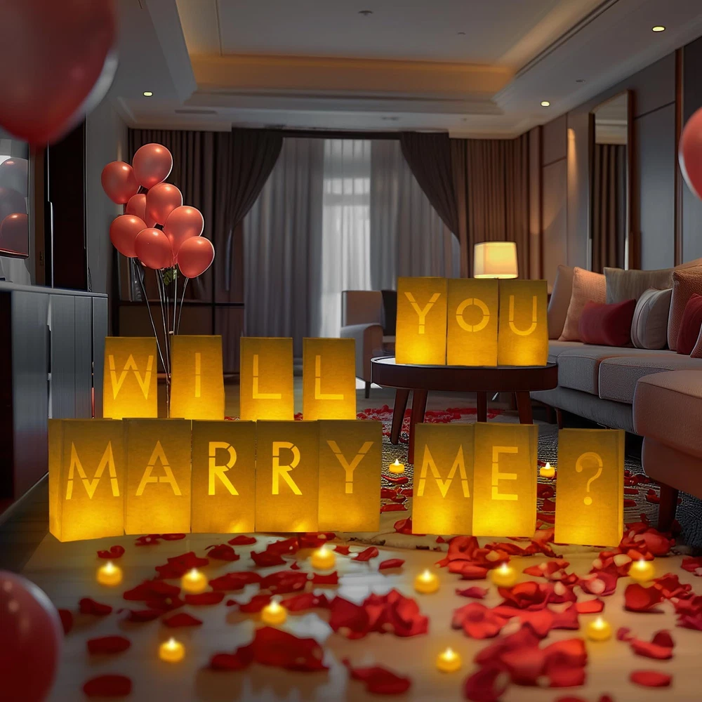 Homemory Will You Marry Me Light Up Letters Proposal Decorations with Flameless Candles and Fake Rose Petals, Valentine's Day Luminary Bags Decorations for Wedding Engagement Impressive Romantic Kit: You will get Will You Marry Me letter light up sign; 24 Pcs LED tea lights; 1000 Pcs red fake rose petals and 1000 Pcs pink fake rose petals. Creating a warm atmosphere for this important day Easy to Use: Simply place the candles inside each luminary bag, and the light shines through the bag to illuminate the letters. For outdoor use you can put some rocks or sand at the bottom of each bag so they don't get blown over by the wind Romantic Decoration: These paper bags can create a romantic atmosphere in a dark place. The tealights are bright and soft, creating a warm and inviting glow. Sprinkle with romantic rose petals and they are sure to impress your lover Surprise Decoration: Choose a special occasion to create unforgettable memories for your loved ones. The light up letters with LED tea lights and rose petals are a fantastic addition to any romantic celebration Wide Application: Our candle luminary bag decoration kit is suitable for various places - whether it's your living room, the comfort of a hotel, the waterfront, or the bedroom. Brighten up your party decor with this romantic kit which guarantees glamour and elegance Shipping We offer FREE shipping on all orders! We ship within Three business days of payment, usually sooner. We use a selection of shipping services such as UPS, FedEx, USPS etc. We only ship to the lower 48 states, no APO/FPO addresses or PO Boxes allowed. Local pickups and combined shipping options are not provided at this time. Return You can return a product for up to 30 days from the date you purchased it. Any product you return must be in the same condition you received it and in the original packaging. Please keep the receipt. Feedback Customer satisfaction is very important to us. If you have any problem with your order, please contact us and we will do our best to make you satisfied. Contact Us If you have any queries, please contact us via ebay. We usually respond within 24 hours on weekdays. Please visit our eBay store to check out other items for sale! Thank you for shopping at our store.