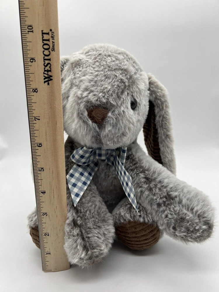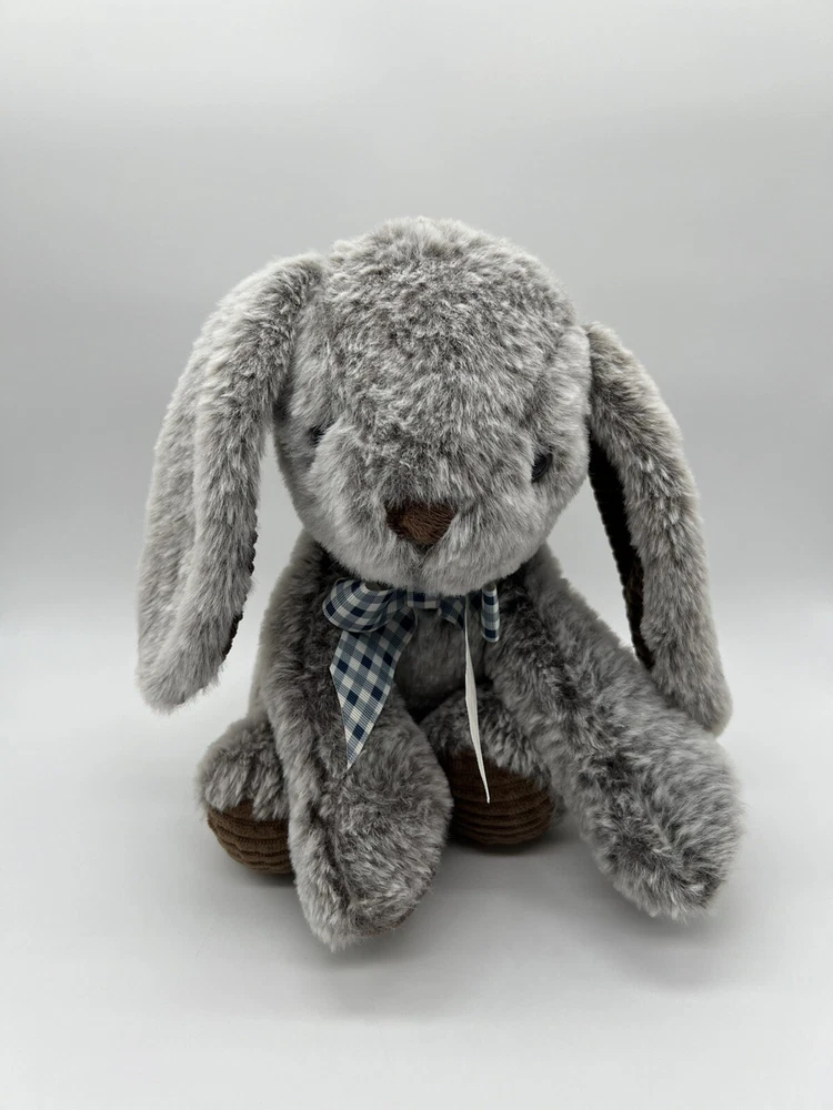 Homerbest Bunny Rabbit Plush Gray Brown Stuffed Animal Gingham Bow Lop Ear Sits Used. Item: N24(6)