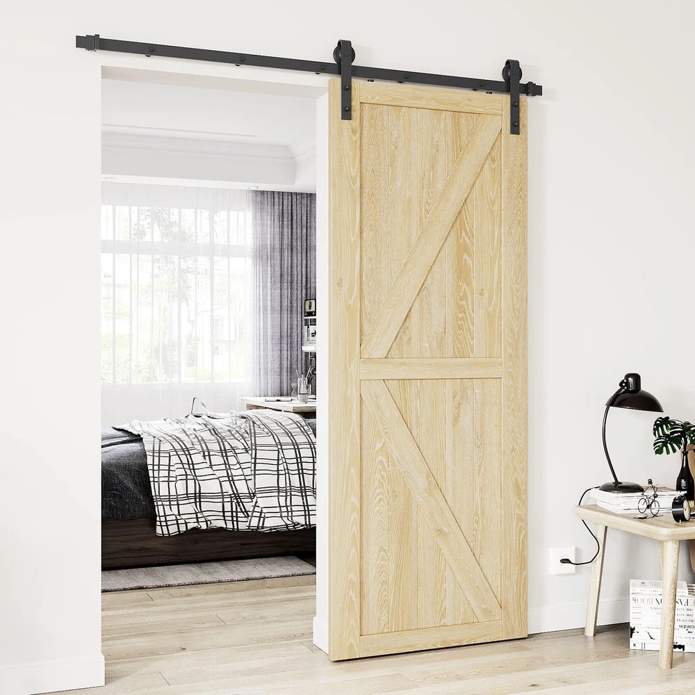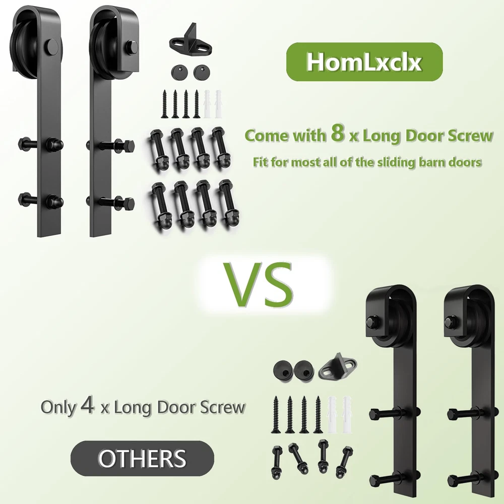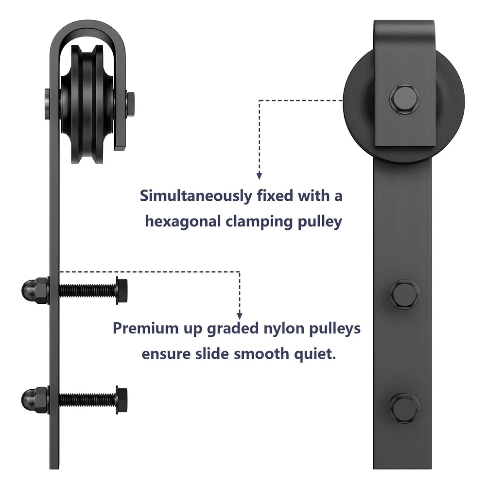 Hangers Desigh: The Sliding Barn Door Hardware Rollers is a set of hangers designed for compatibility with all types of Sliding Barn Door hardware kits. The J-Shape Hanger offers wide compatibility and can easily be integrated into your existing barn door setup. Steel Barn Door Hardware Rollers:These hangers are made from high-quality steel, ensuring durability and long-lasting performance. The wheel material is constructed using POM, known for its strength and smooth sliding capabilities. The frosted black surface treatment adds a sleek and modern finish to the hangers. Heavy Duty J-Shape Hangers: Specifically designed for barn doors, these hangers are suitable for door panel thicknesses ranging from 1 3/8" to 1 3/4". With a weight capacity of 240 lb, they provide stability and reliability even with heavier doors. The Package Includes: 2 X black J-shape hangers, 4 X 55mm and 4 X 60mm long door screws for secure installation, 2 X rubber ends for added protection and noise reduction, 1 X T-shaped floor guide for smooth door movement, and additional door screws for convenience. Reality and Stylish:With its wide compatibility, high-quality materials, and comprehensive package, the Sliding Barn Door Hardware Hangers Rollers offer a reliable and stylish solution for your barn door needs. Tips:The J-shape hangers package does not come with doors or panels.