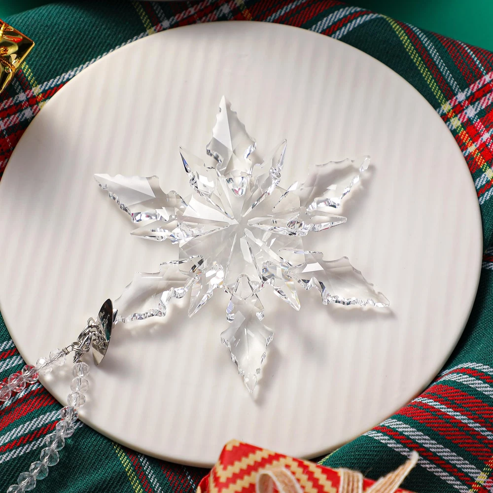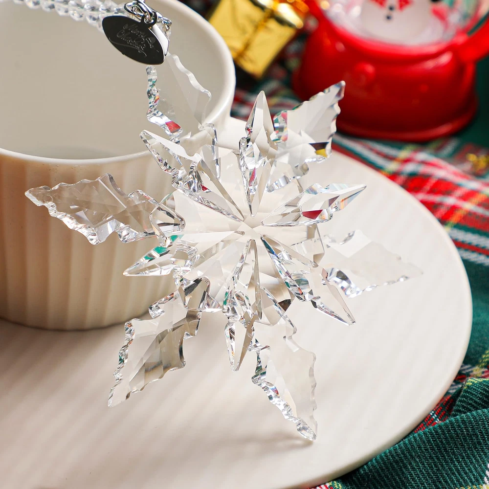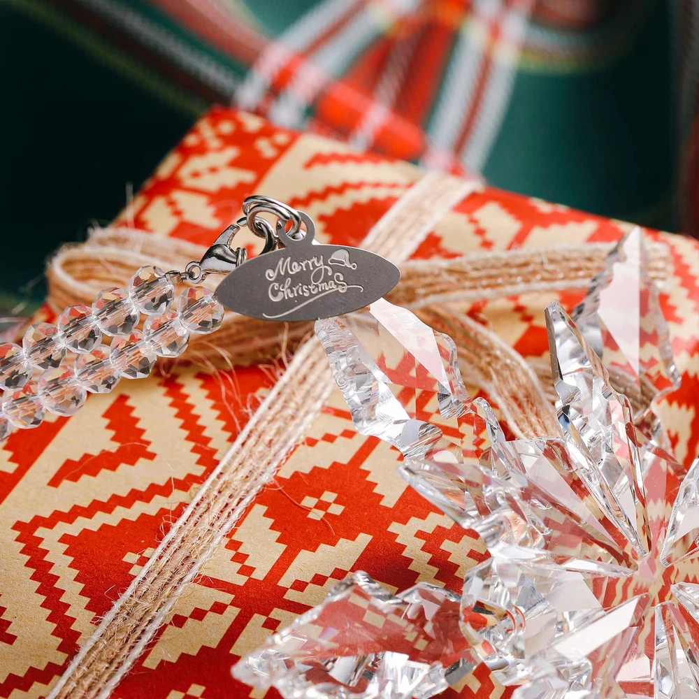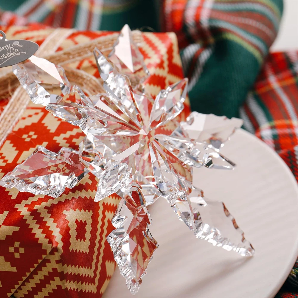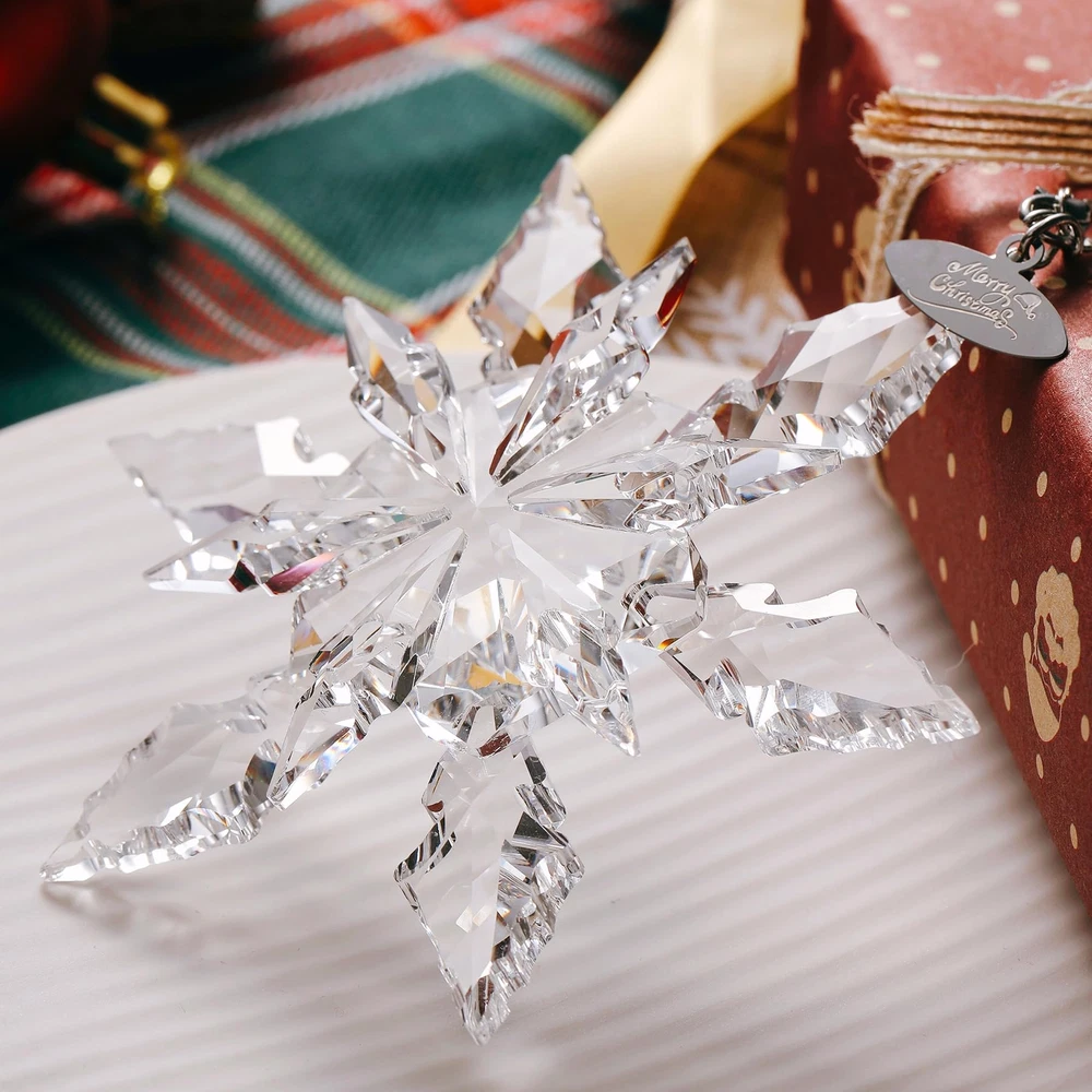 Amazing shiny Christmas snowflake decorations in multiple colors! Perfect Christmas decorations, don't hesitate! The snowflakes are made of crystal and are transparent and natural. Sparkling in different angles and lights. Decorate your Christmas tree. Please note. Because they are hand cut and made items, please expect slight variations. There may be some slight variations in the design and shape of the box. If you receive a damaged package, please contact us immediately and we will give you satisfactory results. Complete Package: Includes 1 x 4.3-inch diameter snowflake ornament, 2 x ribbons, 1 x crystal chain, and 1 x blue gift box High-Quality Crystal: Crafted from sparkling, high-quality crystal that is bright and transparent, each snowflake is carefully designed to refract light beautifully Delicate Snowflake Design: Adds a festive Christmas atmosphere; hanging it on your Christmas tree or window creates a beautiful winter landscape Transparent and Natural: Crystal snowflakes are transparent and natural, perfect for Christmas; Use them to decorate your tree or hang them in the window to catch the light 2024 Annual Ornament: A special gift for Christmas and New Year, adding sparkle to your collection and someone's holiday