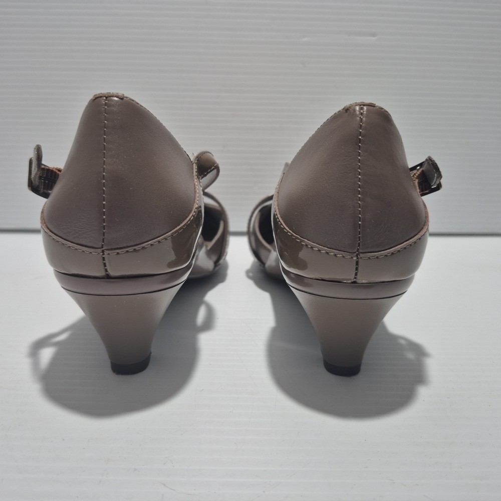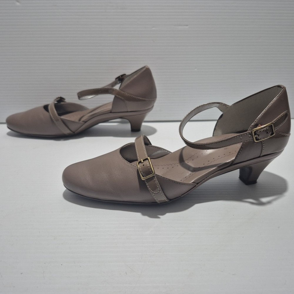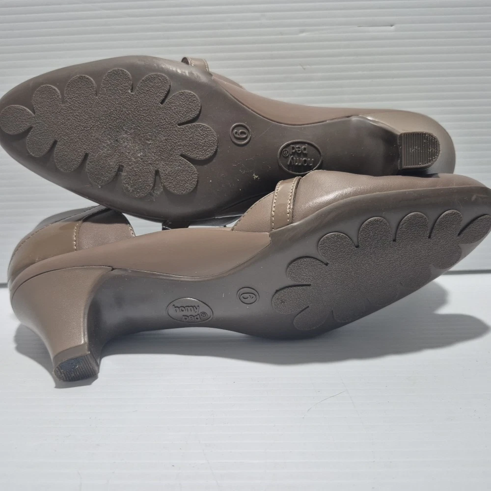 Visit The Rag Traders Closet for hundreds of other quality men's & women's garments! ......IMPORTANT INFORMATION FOR BUYERS...... Garment sizes can vary between brands, eras, and due to wear and washing over time. Teen garments may also have similar sizing to small adult pieces and are not always easily distinguishable. To ensure the best fit, buyers are encouraged to check all provided measurements, review photos, and read the full description before purchasing, as it is the purchaser's responsibility to do so. Description: The Homyped Yvonne heels offer both comfort and style with a classic closed-toe design and a secure ankle strap with buckle closure. Featuring a 5cm heel, these shoes provide subtle elevation while maintaining stability. The brown upper and sole are possibly synthetic. A versatile addition to any wardrobe, suitable for both casual and formal occasions. Key Features: Brand: Homyped Style Name: Yvonne (#101774) Size: 6 Material: Possibly synthetic upper and sole Color: Brown Design: Closed toe, ankle strap with buckle closure Heel Height: 5 cm Measurements (approx.): Sole length (toe to back of heel): 25 cm Condition: Excellent, near-new condition with minimal signs of wear. Please refer to photos as they form part of the description Sent with Australia Post standard parcels Visit our store to view hundreds of other items combined postage available