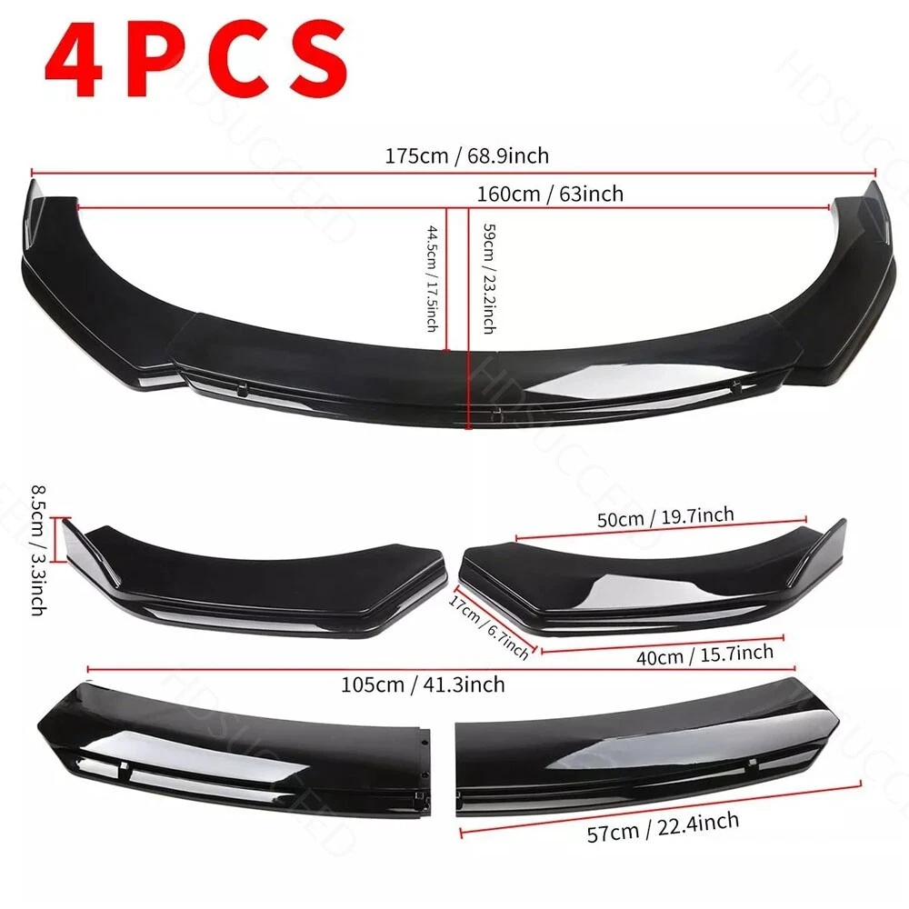 (You can contact us if you have any concerns). 1.Front Bumper Lip Specification: -Type:Front Lip Chin Bumper Body Kits -Material:High quality PP Polyurethane -Color:Glossy Black -Placement on Vehicle:Front;Lower -Fitment Type:Performance/Custom Feature: -Direct Fit. -Easy install and durable use. -Great quality and great Fitment. -Correct Connector No cutting or splicing. -Strict quality control standards to Build and test. -It'll give you a sporty look without making it too aggressive. -Light in weight and enduring, different optical line comes from different points of view. *Instruction Included, Professional Installation Is Highly Recommended.* Note:Please make sure the front bumper of your car is flat enough,and didn't install old front bumper lips. 2.Side Skirt: -Type:Side Skirt Extensions -Material: High quality PP Polyurethane -Color: Glossy Black -Length Size:29in(Make Sure 29in Length is the size you WANT!) Fitment: Universal Fit For most car Features: Universal modified side skirt for car sedan. While the side skirts don't affect the front ground clearance too much, it enhances the side extension of the in a very pure and exciting way. A Perfect Aftermarket Replacement. Professional Installation Is Highly Recommended. 3.Rear Lip Condition: 100% Brand New and High Quality Type: Car Body Rear Lip Material: Made of high quality PP plastic, Durable Color: Glossy Black Surface Finish: Glossy Black Style Rear Lip Size:17.32 in x 4.33 in Placement on Vehicle: Left, Right Features: UV-Protected Coating, 100% Weather Proof Universal fit for all cars, off-roads, SUVs, Trucks Give your car a very sporty looking in minutes by adding this Rear bumper canard It is durable and long lasting during any weather situation It can also protect your rear side bumper from scratches or small bump damages. 4.Strut Rods Length: The length can be adjustable from 7.87" to 13" (200-330mm) Material: Stainless Steel Quatity: 2 x Stainless Steel Bumper Lip Splitter Tie Rod Bars. ( Stainless steel has weldability, corrosion resistance and heat resistance.) Position: This exquisite and compact lever is mainly fixed on the body components (front and rear surround, skirt, head and tail lip), and can also be installed in the car center console or interior trim panel Require: Product will require drilling holes into the bumper and/or lip/diffuser to attach safely to the vehicle. Package Includes: 4 pcs /set Front Lip Chin Bumper Body Kits 2 x Side Skirts 2 x Rear Lip 2 X Strut Splitter Rods 1 x Screws kitFender Flares On Mar 17, 2025 at 20:53:40 PDT, seller added the following information: