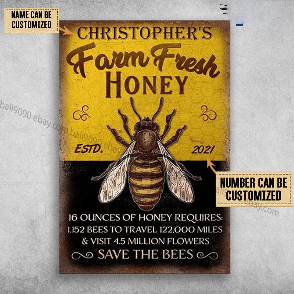 Honey Bee, Farm Fresh Honey, 16 Ounces Of Honey Requires Customized Personalized NAMEYEARS Premium Matte posters ( No Framed ) Design & Printed in the USA Matte edge-to-edge print on 200 GSM paper Multiple sizes: 11x17, 16x24 Inch Fingerprint and smudging resistant Shipped in well-protected cardboard tube packaging For indoor use SHIPPING On average, merchandise is produced and shipped from our facility 2-3 business days after purchase. Standard shipping/transit times apply (1-7 days for domestic and 4-15 days for international). Replacement/return policy We stand behind the quality of our products and guarantee our workmanship 100%. Any defects or errors on our part will result in a replacement at no charge. We typically do not accept returns due to user error such as incorrect selection of sizes, designs, colors, etc.