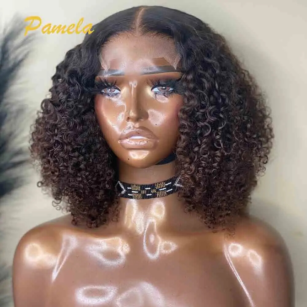 $ 112.95HD 13X4 Highlight Brown Lace Front Human Hair Wig Curly 4x4 Lace Closure Wigs