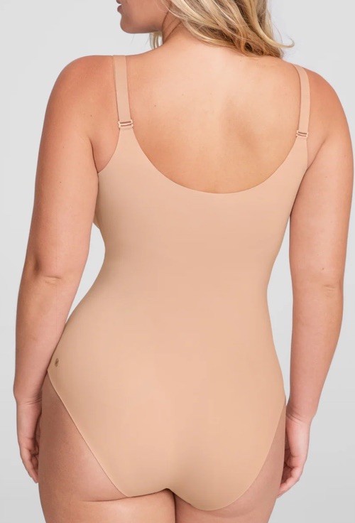 The Honeylove Cami Bodysuit in size 2X Nude is a plus-size shapewear top designed for women. This beige bodysuit from the brand Cami features a slimming fit with adjustable straps and removable pads for a customized feel. The snap crotch adds convenience and ease of use, while the stretch material provides comfort and flexibility for all-day wear. Perfect for achieving a smooth and sleek silhouette under various types of clothing, this bodysuit is a versatile and practical choice for women looking to enhance their figure.
