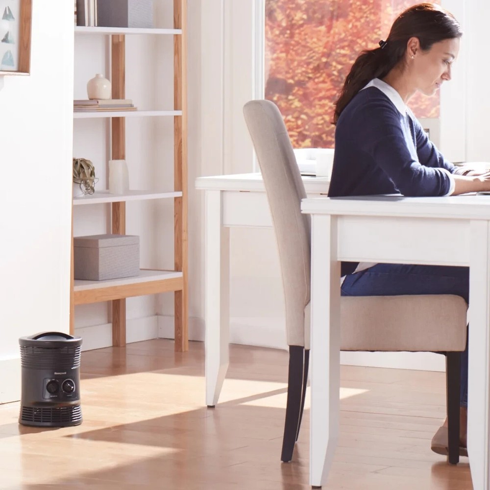 Take control of your comfort with the Honeywell 360 Degree Surround Heat. It’s ideal for small to mid-sized rooms, and a great choice for additional comfort in your home or office. This space heater features fan forced technology, an adjustable thermostat as well as 2 heat settings and all-around heat output so you’re always cozy. When it comes to your family, safety matters. The room heater also offers added protection with multiple safety options including a 360-degree tip over switch, 2x overheat protection, an auto-off time option and an easy grab, cool touch carry handle. With a space heater, you can even save money and energy! By turning down your whole house thermostat a few degrees and heating just the room you are in, a Honeywell small heater can help you save money while providing soothing warmth. 360 DEGREE ALL AROUND WARMTH – Use the Honeywell 360 Degree Surround Heater in small to mid-sized rooms for additional comfort. This space heater features an adjustable thermostat as well as 2 heat settings and all-around heat output so you’re always cozy. SAFETY MATTERS: This small heater offers multiple safety options including a 360-degree tip over switch, 2x overheat protection, an auto-off timer option and an easy grab, cool touch carry handle. INCREASE YOUR COMFORT – Always be comfortable, no matter what season it is. This personal heater has fan forced technology and provides 360-degree, all around warmth. As a small space heater, it’s perfect for a bedroom, office and more. HONEYWELL QUALITY: Help improve heating and energy savings in your home, bedroom or office using a Honeywell portable heater. Honeywell offers whole room heaters, tower heaters and oscillating heaters.