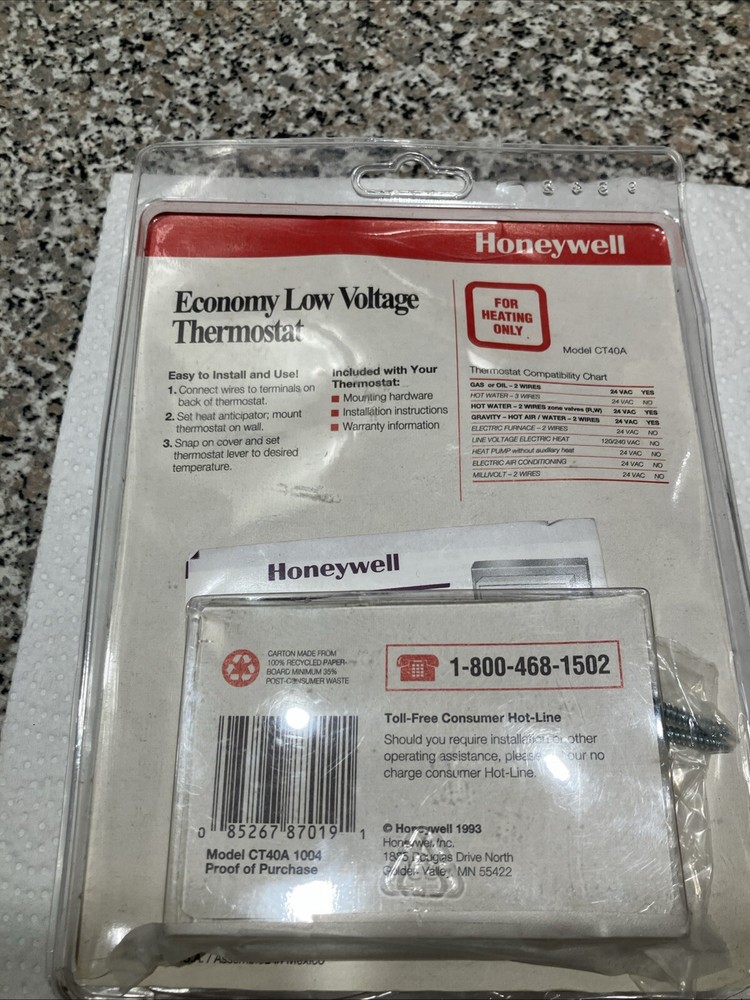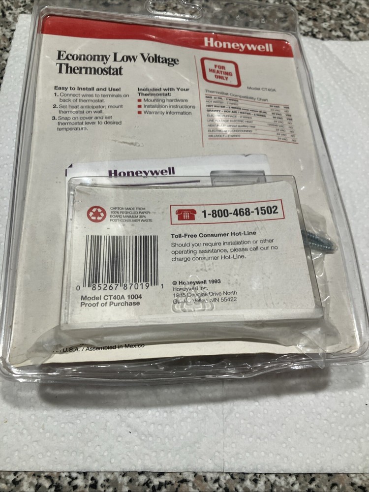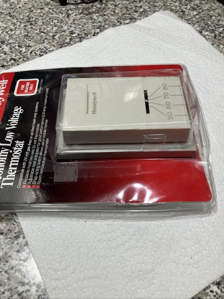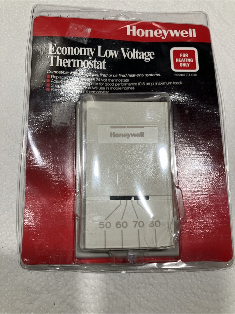 This is a Honeywell CT40A Economy Low Voltage Thermostat designed for heating only. It is a sealed unit and part of old stock inventory. This thermostat is suitable for business and industrial use. Item is new, but package broken. For condition, see pictures
