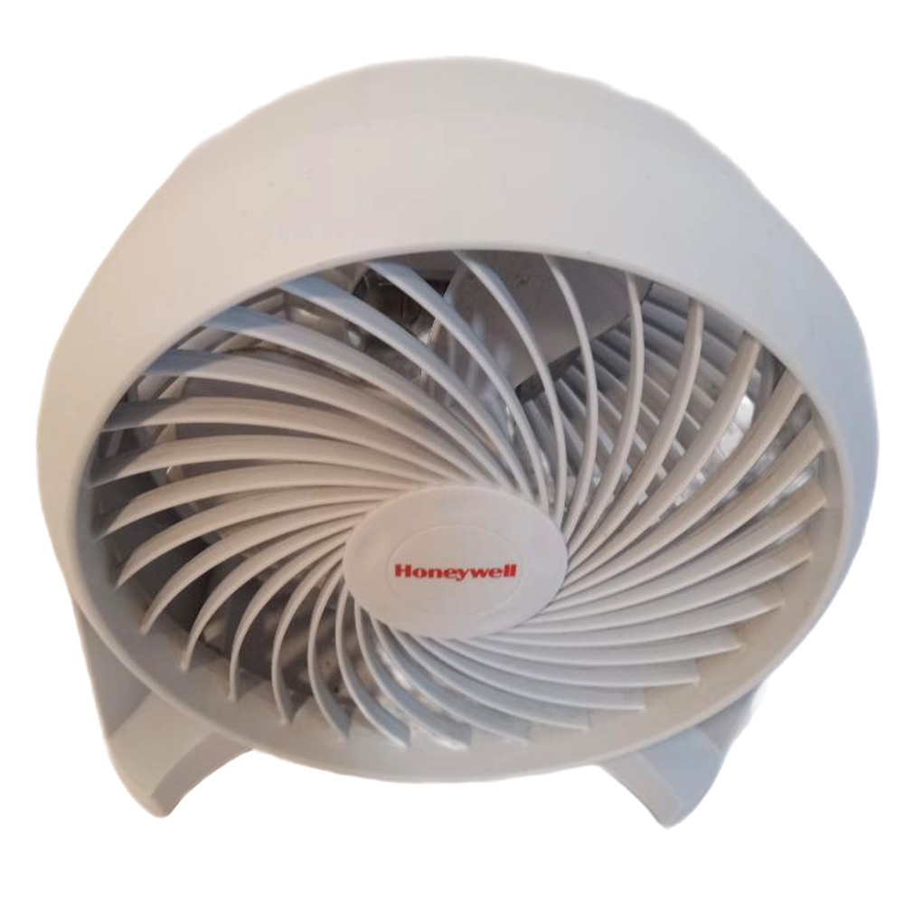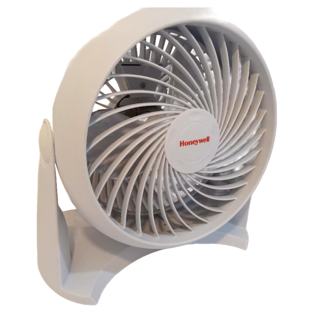 Honeywell Fan Turbo Force Table Air Circulator Stand Good Condition The Honeywell Fan Turbo Force Table Air Circulator is a white, round, electric-powered fan made of plastic. It features a 7.2-inch assembled blade diameter and 3 speeds, making it suitable for indoor use in any room. With a weight of 2.6 pounds, this fan includes features like wall-mountability, adjustable tilt head, and quiet operation. Operated with an analog/mechanical control style, this fan offers a matte finish and is designed for easy use on a table or desk. *** Item Descriptions *** Brand - Honeywell Condition - *** Pre-Owned *** Good Condition *** Has Some Dust On Fan Blades Color - White For - Indoor Use, Table Or Desk