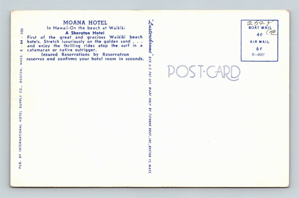 Honolulu HI Moana Hotel Waikiki Beach Vintage Antique Canoes Postcard