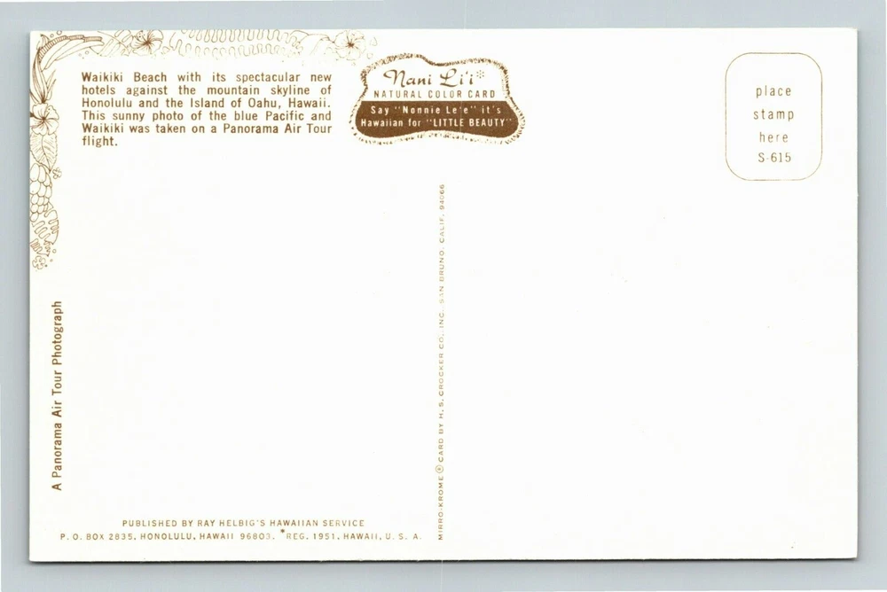 Region: Hawaii Features: Chrome Type: Printed (Lithograph) Era: Chrome (1939 - present) Theme: Cities & Towns Unit of Sale: Single Unit Country: USA Original/Licensed Reprint: Original City: Honolulu Subject: Cities & Towns Continent: North America Country/Region of Manufacture: United States Postage Condition: Unposted