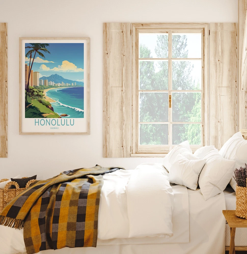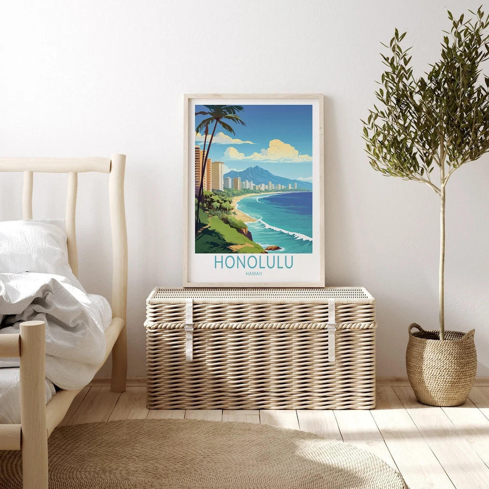 Honolulu Hawaii Travel Print Hawaii Travel Art Wall Decor Honolulu Hawaii Home Decor Wall Art City Travel Poster Gifts Home Decor Material: Premium luster photo paper Print type: Inkjet printing One side printed + The finish provides the highest possible resolution and color saturation + Lasts up to 200 years in color and 400 years in black-and-white + Printed on high-quality resin-coated photo base paper medium + Posters can be hung with double-sided tape, tacks, or framed + Hand washing with a gentle cry cloth is recommended for extended durability I will hand select the best choice of paper for your chosen design to ensure top quality results for a beautiful, bright and luxurious print. All prints are sealed in cellophane slips for protection during transportation, and are shipped in a protective cardboard envelope.