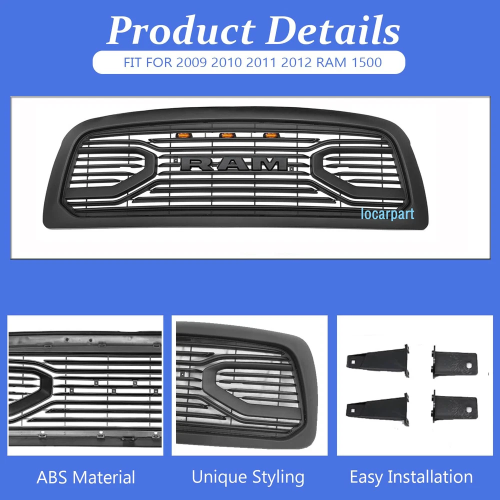 Product Description Specification: Color: Matte black Material: ABS Plastic Type:Front Grille Grill with 3Needed letter. No drilling and cutting required. Feature: 1.High quality replacement ABS material, superior craftsmanship and durability. Each grille ensures good looks with a clean surface, you can enhance the style or function of the grille. 2.Prevent foreign material from entering the air intake and damaging the engine. 3.Provides better airflow to the radiator to help the cooling process better. 4.EASY INSTALLATION: Just unscrew your old grill and screw this one in with existing bolts. Tips: install ation video can be found b y searching “ram1500 grill 2002 install” on YouTube. Package Include: 1x Front Grille WITH 3Needed Letter 1x Wire Harn ess 3x Amber LED About Us Payment Terms Returns Contact Us Figocarpart is one of US’s fastest growing online retailersWith our best effort, we are now trusted by more than 100,000 customers nationwide. We are dedicated to offering you an unrivalled choice of products with unbeatable low price and best quality. We ONLY accept Paypal. We ship to your eBay or Paypal address. Please make sure your eBay ID、contact and Paypal address is correct before you pay. Thank you! 1.If item is defective and not working on arrival, please contact us within 7 days of receiving the defective for repair or refund. Item may be returned within 30 days of purchase upon your receipt.All items returned must contain all original packaging materials. 2.This item have 1Year warranty. We offer free repairing service within 6 months from the date of purchased. If damaged is caused by undue wear and tear, dirt, misused, improper installation/operation, accident or repaired by unauthorized person, the warranty becomes void. 3.All returns must have prior authorization. Please message us firstly if you have any problem. Please contact us before you return the item. 4.Buyer is responsible for the return postage. If you ask for a refund during valid period, we will offer you a refund without postage charges. Shipping and handling charges, insurance are not refundable in any case. We are only responsible for once re-sending expense for replacement due to defects. Please contact us firstly if you have any problem. * We give you a 30 days money-back guarantee to return any items purchased, no questions asked, hassle-free. * You can return for refund or exchange same product or different product (difference of price will be charged) within 30 days after you receive the item. * Any returning or exchanging items must be in the original package and new condition. We reserve rights to refuse refit or damaged items (caused by buyer) for return and exchange. * No returns will be accepted if you contacted us after 30 days of receiving the item. * Return fee: Buyers are responsible to pay the return shipping fee. 15% restocking fee on total price will be charged and be deducted from the refund total. * Exchange fee: No restocking fee will be charged, however Buyers are responsible to pay the return shipping fee and exchange reshipping fee, depending on the weight of merchandise. * Email our Customer Service Department first before return the item back. Please specify your item number, your eBay ID, and the reason for the return. Click here to contact us directly. Any questions, pls contact us via ebay message or email us.We will reply your message within 48 hours. If you do not receive our reply within 48 hours, pls post a message again because sometimes our message system may block some emails. About Us Figocarpart is one of US’s fastest growing online retailersWith our best effort, we are now trusted by more than 100,000 customers nationwide. We are dedicated to offering you an unrivalled choice of products with unbeatable low price and best quality. Payment We ONLY accept Paypal. We ship to your eBay or Paypal address. Please make sure your eBay ID、contact and Paypal address is correct before you pay. Thank you! Terms 1.If item is defective and not working on arrival, please contact us within 7 days of receiving the defective for repair or refund. Item may be returned within 30 days of purchase upon your receipt.All items returned must contain all original packaging materials. 2.This item have 1Year warranty. We offer free repairing service within 6 months from the date of purchased. If damaged is caused by undue wear and tear, dirt, misused, improper installation/operation, accident or repaired by unauthorized person, the warranty becomes void. 3.All returns must have prior authorization. Please message us firstly if you have any problem. Please contact us before you return the item. 4.Buyer is responsible for the return postage. If you ask for a refund during valid period, we will offer you a refund without postage charges. Shipping and handling charges, insurance are not refundable in any case. We are only responsible for once re-sending expense for replacement due to defects. Returns Please contact us firstly if you have any problem. * We give you a 30 days money-back guarantee to return any items purchased, no questions asked, hassle-free. * You can return for refund or exchange same product or different product (difference of price will be charged) within 30 days after you receive the item. * Any returning or exchanging items must be in the original package and new condition. We reserve rights to refuse refit or damaged items (caused by buyer) for return and exchange. * No returns will be accepted if you contacted us after 30 days of receiving the item. * Return fee: Buyers are responsible to pay the return shipping fee. 15% restocking fee on total price will be charged and be deducted from the refund total. * Exchange fee: No restocking fee will be charged, however Buyers are responsible to pay the return shipping fee and exchange reshipping fee, depending on the weight of merchandise. * Email our Customer Service Department first before return the item back. Please 