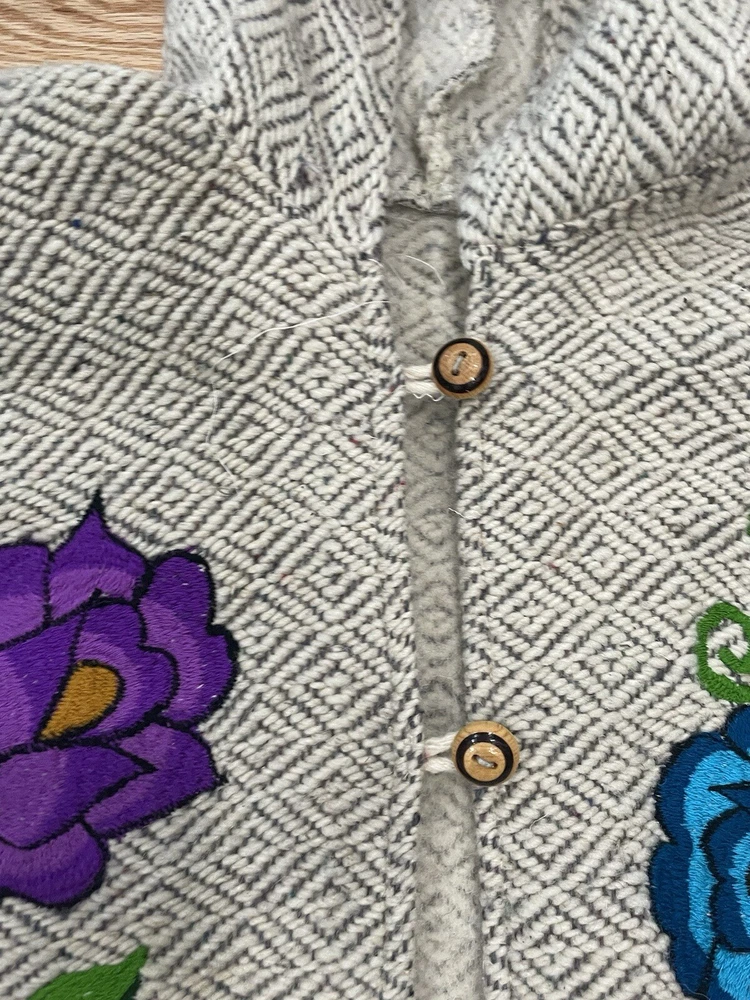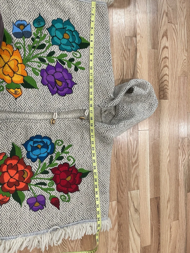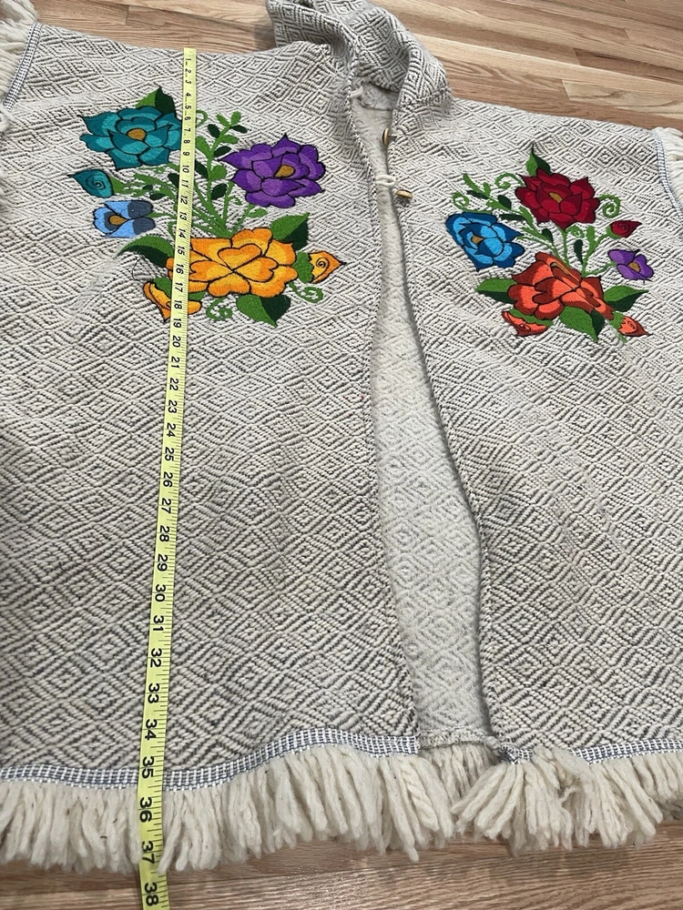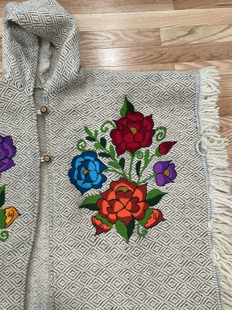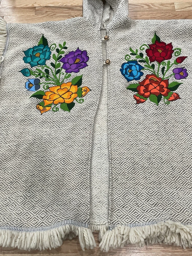 Hooded Poncho Cape Embroidered Floral Women One Sz Made In Mexico