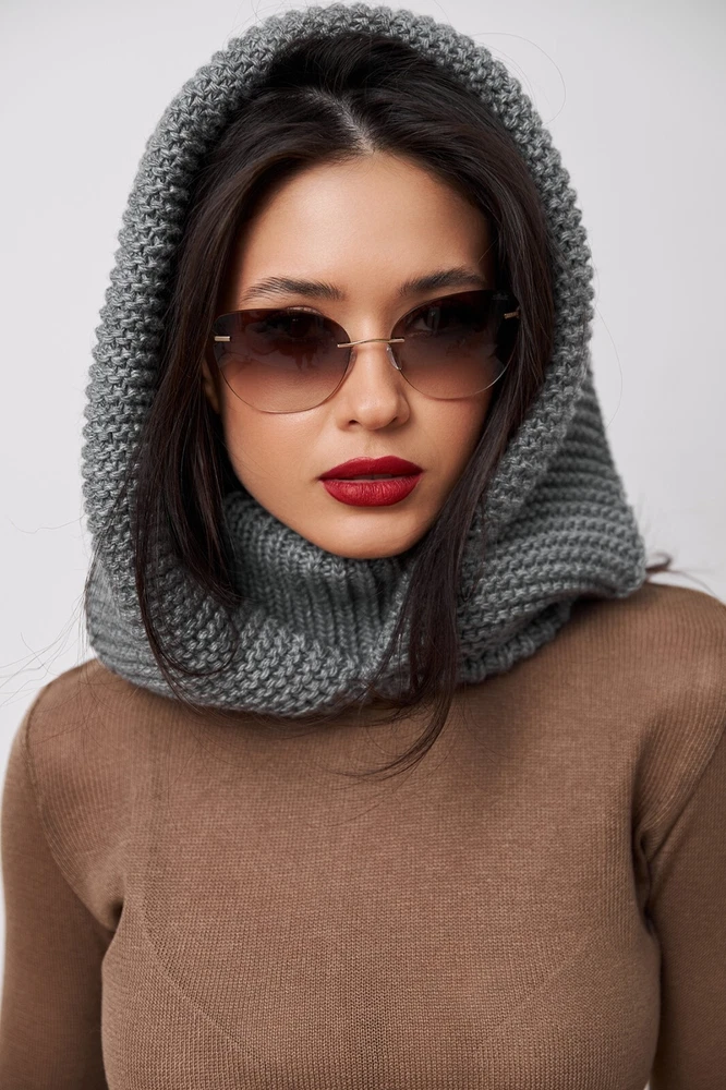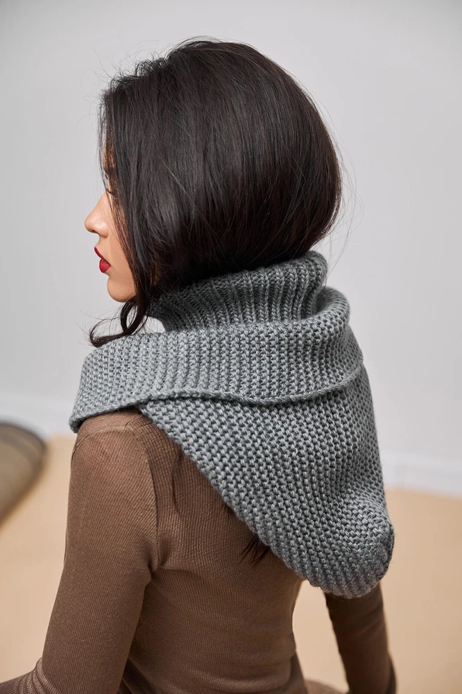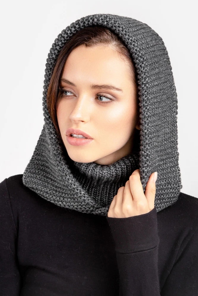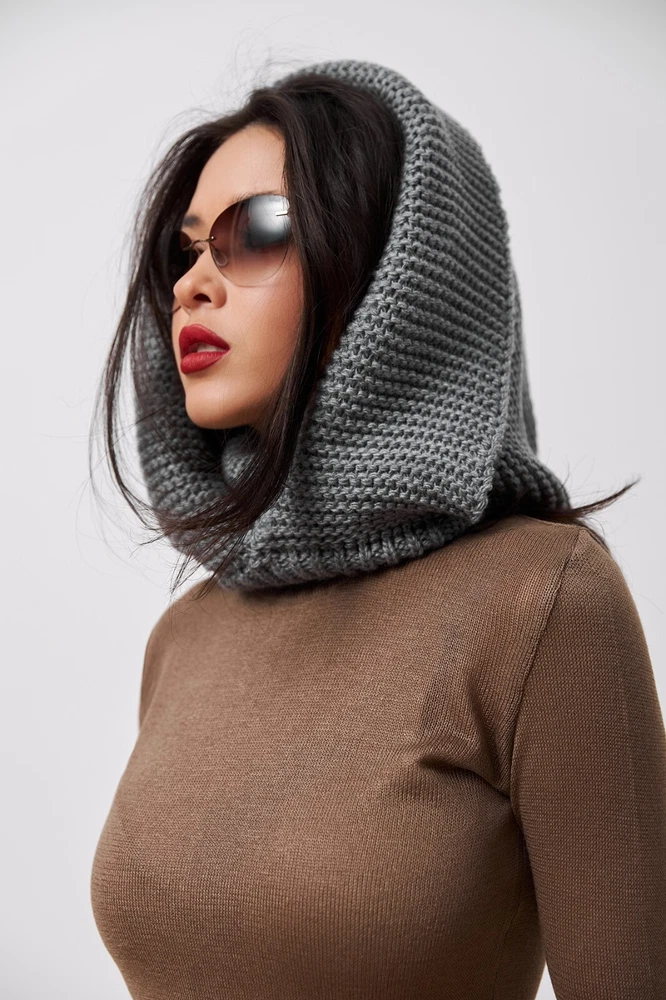 Grey Hooded Scarf, Knit Hoodie Scarves, Womens Snood, Warm Hooded Cowl, Wool Head Scarf, Trend Scarf, Outdoors Gift The multifunctional winter accessory is made of semi-woolen yarn. The model consists of an elastic collar that covers the neck well and a spacious hood in a textured weave. The elegant accessory has a wide lapel for extra warmth. Leave this snood on after you take off your jacket, it will become a stylish addition to a pullover or sweater. A super soft and cozy hooded scarf. Product details: 70% acrylic, 20 % mohair, 10 % wool Width - 14 in Length - 20 in I did my best and send my beautiful hoodes to the Fulfillment center in USA to minimize shipping time for you. Now shipping time will take about 3-5 business days among USA and about 7-10 business days to Canada