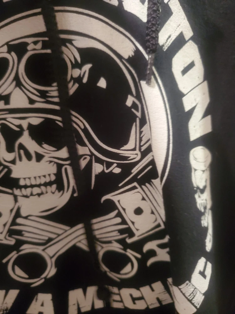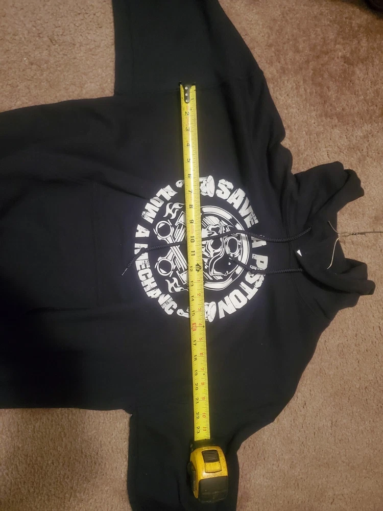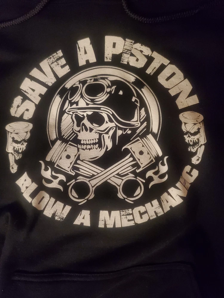 This black hooded sweatshirt is perfect for any mechanic or auto enthusiast. With a fun and unique design featuring a skull and the words "Save a Piston" on the front, this Gildan Heavy Blend hoodie is sure to turn heads. Made of a comfortable blend of polyester and cotton, it is machine washable for easy care. Any questions please message. Tried to attach as many photos as possible. Thank you! The long sleeve hoodie comes in a size L and is unisex, making it a great addition to any wardrobe. It also features convenient pockets for added functionality. Made in Honduras, this Gildan brand hoodie is part of the Activewear category and is perfect for anyone looking for a comfortable and stylish piece of clothing. This item is as is. Sold as is.