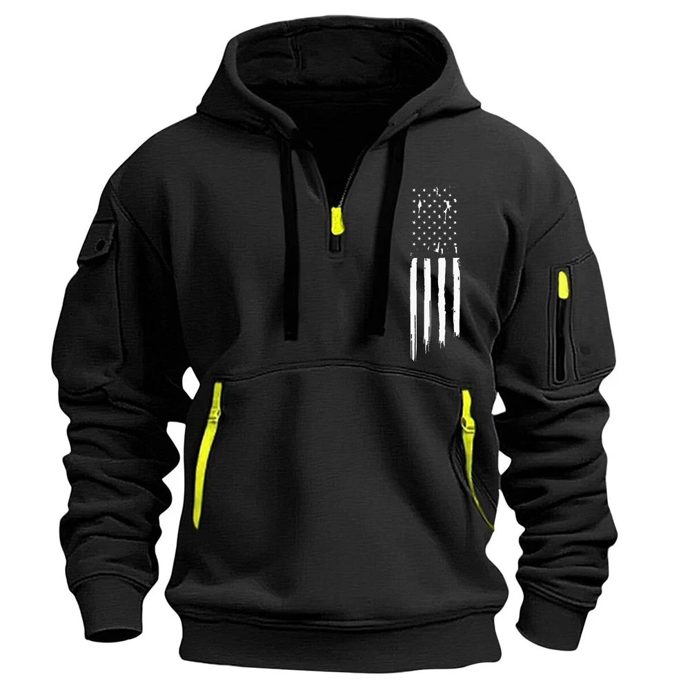 Hoodies for Men 1/4 Zip up Military Tactical Sweatshirt Hoodie With Arm Pockets