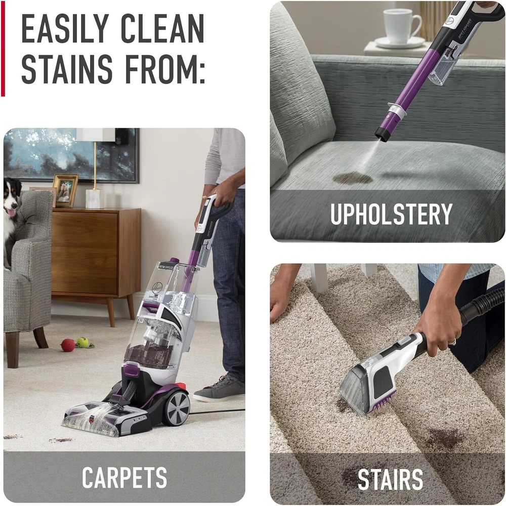 Hoover SmartWash Automatic Carpet Cleaner Machine FH53000PC, Purple Hoover SmartWash Pet Automatic Carpet Cleaner Machine with Spot Chaser Wand, Deep Cleaning Shampooer, Carpet Deodorizer and Pet Stain Remover, FH53000PC, Purple About this item AUTOMATIC CLEANING: The trigger-less design automatically mixes and dispenses solution as you push forward to eliminate the guesswork STAIN REMOVER WAND: The innovative Spot Chaser Pretreat Wand detaches from the machine to provide instant cleaning action for set-in stains with the included pretreat solution FASTER DRYING: Use Dry Only mode in combination with HeatForce for faster drying so you can get back on your carpets quickly ATTACKS PET STAINS & ODORS: Specifically designed for pets, the FlexForce Pet PowerBrushes clean deep and resist pet odor build-up while removing dirt, debris, and pet messes from your home DUAL TANK SYSTEM: Keeps water and solution separate from the dirty water tank WHAT’S INCLUDED: Pet Tool, 8 ft Hose, sample size Spot Chaser Pretreat Stain Solution, sample size Paws and Claws Carpet Cleaner Shampoo, accessory storage bag Deep cleaning as easy as vacuuming Just like our groundbreaking SmartWash+, simply push SmartWash PET forward to wash and pull it back to dry. Got tough pet messes? SmartWash PET is designed with a built-in pretreat wand so it’s easy to pretreat as you go. Automatic Cleaning Push forward to wash, pull back to dry. It’s that easy Pretreat Any Time Simply remove the Spot Chaser Pretreat Wand to target tough stains anywhere Power Though Pet Messes FlexForce Pet PowerBrushes and antimicrobial pet tool tackle pet messes on carpet, stairs and furniture. Hassle-Free Cleanup Easily removable dirty water tank lid, nozzle and brush roll. Shipping Return Customer Service Feedback Shipping Shipping Cost : Free to USA,and more We ship to eBay address Return Refund is valid within 30 days after the date delivered Refund will be given as money back or replacement The money less the freight cost will be refunded due to their own fault Item must be returned in original packing same as reached Buyers are responsible for the return shipping cost Customer Service Business Hours: Monday thru Saturday 8:30am to 5:30pm EST. Compatibility tables are for reference only and should only be used as guidance so OT Auto Parts recommend checking the part number(OEM number) of your existing unit before purchasing as we cannot take responsibility for incorrect orders placed. Feedback Please leave us with positive feedback if you are satisfied with our products and services,if not, please contact us before leave any neutral or negative feedback,we'll try our best to satisfy with you. Thanks. On Sep 19, 2024 at 19:20:34 PDT, seller added the following information: