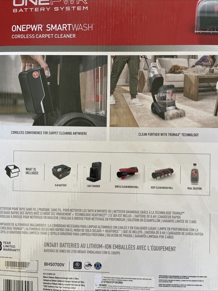 This Hoover carpet cleaner is a game-changer! The SmartWash system makes deep cleaning effortless, and the included battery and charger add so much convenience. It arrived fast, brand new in the box, and works like a dream—powerful suction, easy to maneuver, and leaves carpets looking fresh. Perfect for pet owners or high-traffic areas. Highly recommend!