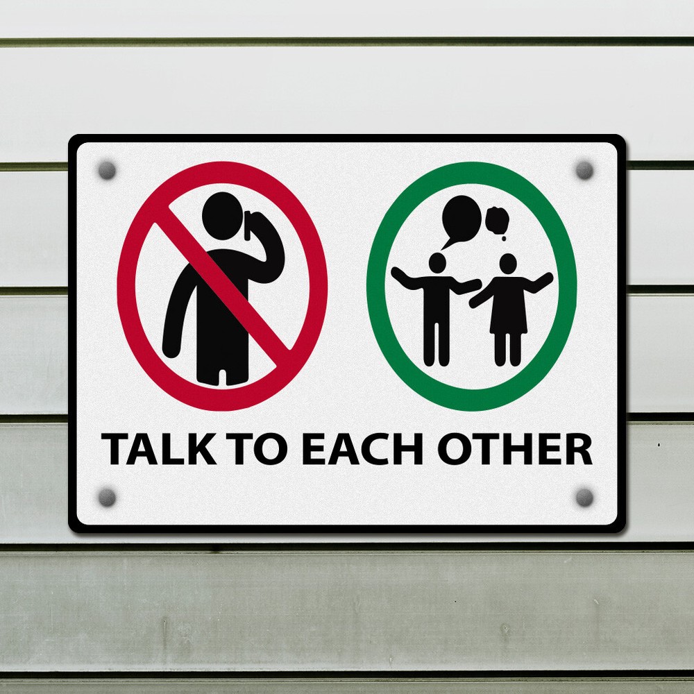 Signs Outdoor/Indoor Metal Personalized sign Protect yourself and avoid accidents with our metal warning sign. Communicate instructions and safety warnings efficiently to others. The text reads: talk to each other . Perfect for businesses looking for: With Border metal signs, Drive Safely cut signs, signs, wall signs, or yard signs. Make sure your message or instruction catches the attention and is being seen as well as respected. Also available in different shapes and sizes, you will always find the perfect fit for you! Our designs are professionally printed with state-of-the-art equipment guaranteed to last for years. We have more than 12 years of experience in the printing industry to offer you stunning detail and rich lifelike colors. All prints are carefully made in our lab in Tampa, Florida. BEST METAL SIGN ON THE MARKET! **PREMIUM QUALITY: Our industrial metal signs are made of durable .040IN high quality aluminum that will last for decades. Very clear, bold, easy to read lettering that can be read from the distance. **INDOOR & OUTDOOR: Our aluminum yard metal signs can be used indoor as well as outdoor. They can be easily mounted on any surfaces such as walls, doors or fences with zip ties, screws or nails (NOT INCLUDED). **EASY INSTALLATION: Our indoor and outdoor signs come with pre-drilled holes for an easy installation on any surfaces. We left you the easy part... You just have to make sure it is straight! **WEATHERPROOF: Our personalized signs are especially treated against UV, humidity and water thanks to our ink curation. As a result, they will not rust or fade which make them perfect to use indoor and outdoor. **UNIQUE DESIGNS AND GRAPHICS: We put a lot of thought and time in our design process. We are proud to offer you the best selection of informative signs graphic designs, as well as the best variety of safety and buckle up labels designs. Whether you are a business owner or a homeowner, you will be 100% satisfied with our metal signs. PAYMENT TERMS Ordering And Payment We accept a large variety of payments. You can pay with credit or debit card, Apple Pay, Google Pay, PayPal, or PayPal Credit. We ship items within 24 to 48 hours of a cleared payment. Providing your payment sooner allows us to to prepare and ship your items faster. By Florida State Law, we are required to collect 7% Sales Tax for the items purchased and shipped in Florida. FEEDBACK Please contact us before leaving any negative feedback. If for any reason, you are not happy with your purchase, contact us within 24 hrs of receipt and we will exchange or replace your item, or refund your money! We will make everything we can to make sure you are happy with your order. We will promptly leave positive feedback upon successful completion of the transaction. Shipping Terms HANDLING AND SHIPPING TIME MOST OF ITEMS SHIP FREE. Items that we have in stock are usually shipped within 24 hours. Customized and Personalized items might take up to 36 hrs. That is so that we can pay necessary attention to provide your item to you with best quality. Domestic shipments usually take between 3 to 8 business days. Please keep in mind that during HOLIDAY SEASON that domestic shipment time might extend an extra day or so. If you need an item earlier, you can select priority shipping at check out. International shipping takes 15 to 22 business days. Please allow extra time for weekends and holidays as this will add extra days to the delivery time. We combine shipping for multiple items, so order more and save. RETURN POLICY Fastasticdeal is confident you will be satisfied with your purchase. We offer all customers a 30-day money back guarantee. If for any reason you are unhappy with your purchase, you may contact us to process a Return Merchandise Authorization for a refund or exchange. Customer service Please send us an Ebay message through Ebay interface or click here to contact us. We answer most questions within 24-48 hours.