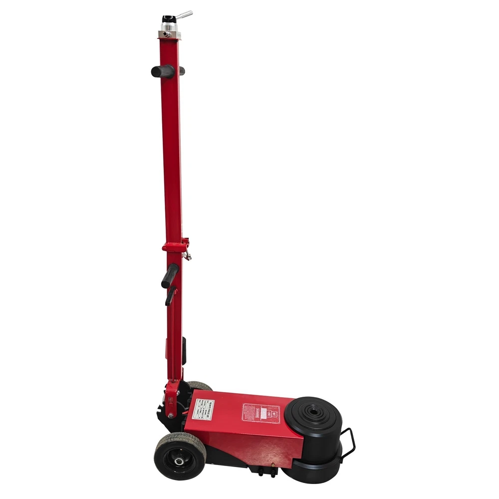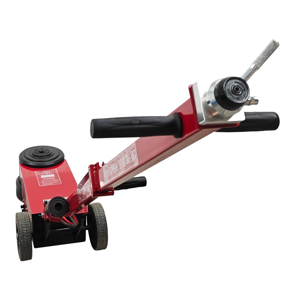 100 Ton Pneumatic Hydraulic Jack, Horizontal Heavy-Duty Air-Powered Shop Press, Portable Hydraulic Cylinder for Industrial Auto Repair, Frame Bending, Metalworking The pneumatic jack is a jacking device using the compressed air as a power source, and is mainly used for mobile jacking scenarios such as automobile maintenance and transportation repair. It lifts heavy objects according to the pneumatic principle and has the advantages of easy operation, quick jacking, high safety, etc. Parameters Load capacity 100T (Load capacity of second layer: 50T) Note: The load capacity of the first layer is the standard load capacity, and the load capacity of the second layer is reduced by half. Minimum height 210 mm (8.27in) Lift height 400mm (15.75in) Rated pressure 0.8-1.2Mpa Top body width 180 mm (7.09in) Machine size 67*29*149cm (26.4*11.4*58.7 inches) Gift Pad iron*2, Height: 5.5cm (2.17in) *1, 3.3cm (1.3in) *1 Note: Customers should prepare the air compressor by themselves. Precaution 1. Before jacking, confirm the weight of the object. Overloading is strictly prohibited. 2. Identify the center of gravity of the object, select a proper jacking point for the jack, and place it stably. Also consider the ground hardness. If necessary, use a sturdy wooden board or similar items to assist in jacking to prevent tilting or falling during lifting. Avoid severe vibration. 3. The used air pressure should be within the rated air pressure range to avoid the phenomenon that the equipment is overloaded to affect the service life. 4. During use, the high-pressure air hose must not be forcibly bent, dragged on the ground, rubbed against surfaces, or run over by heavy objects--all of which will shorten the service life. 5. If multiple jacks are used together, the starting speed should be kept synchronized to ensure balanced load distribution on each jack and prevent falling hazards. 6. The jack uses the 46# anti-wear hydraulic oil, and the sufficient oil quantity must be kept. It is recommended to replace the oil after 3 months of initial use, and every 6 months thereafter. 7. Add the lubricating oil to the cylinder section regularly. The oil can be added through the air inlet connector. 8. After lifting the heavy object, place supports underneath the heavy object for safe operation. 9. To lower the jack, pull the handle at the air distribution valve counterclockwise to achieve automatic descent of the jack. 10. Keep the product clean. It is a normal phenomenon that little oil seepage exists during initial use due to assembly, disassembly or transportation. Features The double-fold design is adopted, the rod can be folded back, the more space is saved, and it is easy to carry and transport. The jack is ideal for fleet vehicles, mobile tire repair and similar scenarios. The double jacking layers can be controlled to ascend and descend. Lifting and lowering are quick, safe and stable, the working efficiency is greatly improved, and the time cost is well saved. The reinforced enlarged wheels are quiet and resistant to wear and reduces the shock. The stress area is greatly increased, the load capacity is effectively increased, and the safety and stability are ensured. Two pieces of heightening pad iron are provided for effectively adjusting the jacking height, meeting the requirements of different working conditions and improving the environmental adaptability. Operation Method 1. Unfold the device, place it on a clean, flat and hard surface, and then connect it to the air compressor. 2. Position the jack under the heavy object to be lifted, and ensure the jack will not fall down or deviate during jacking. 3. Adjust the rated pressure of the air compressor to 0.8-1.2MPa before operation. 4. Pull the handle at the air distribution valve counterclockwise to lower the jack automatically. Product Display Item Included (03AS265C6): 1 x Pneumatic Jack 100T On Mar 1, 2026 at 21:25:37 PST, seller added the following information: