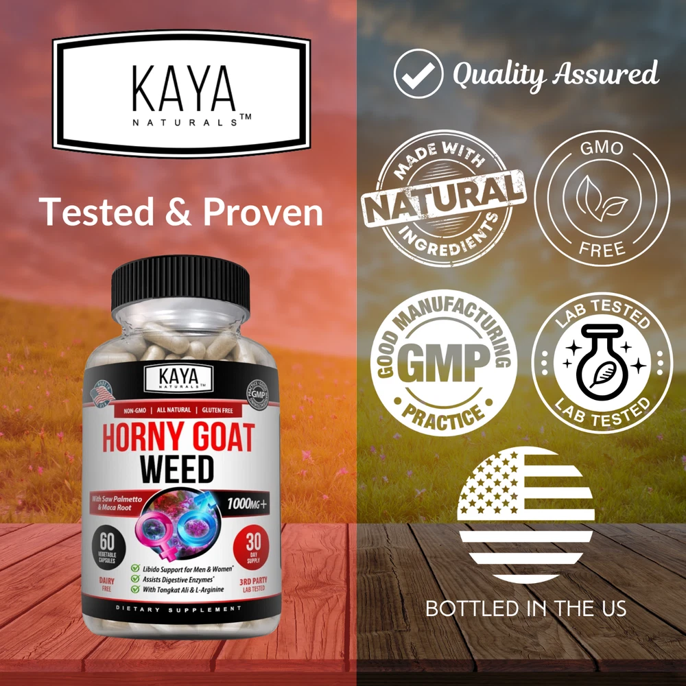 Horny Goat Weed Capsules for Men & Women - 1560mg including Horny Goat Extract, Maca Root Powder, Tongkat Ali, Saw Palmetto, L-Arginine and Panax Ginseng FREE SHIPPING - LOWEST PRICE ✔️ Premium Ingredients : Powerful herbal extracts of natural ingredients ✔️ Trusted Formula : Bottled in the USA & third party tested to assure the quality & purity