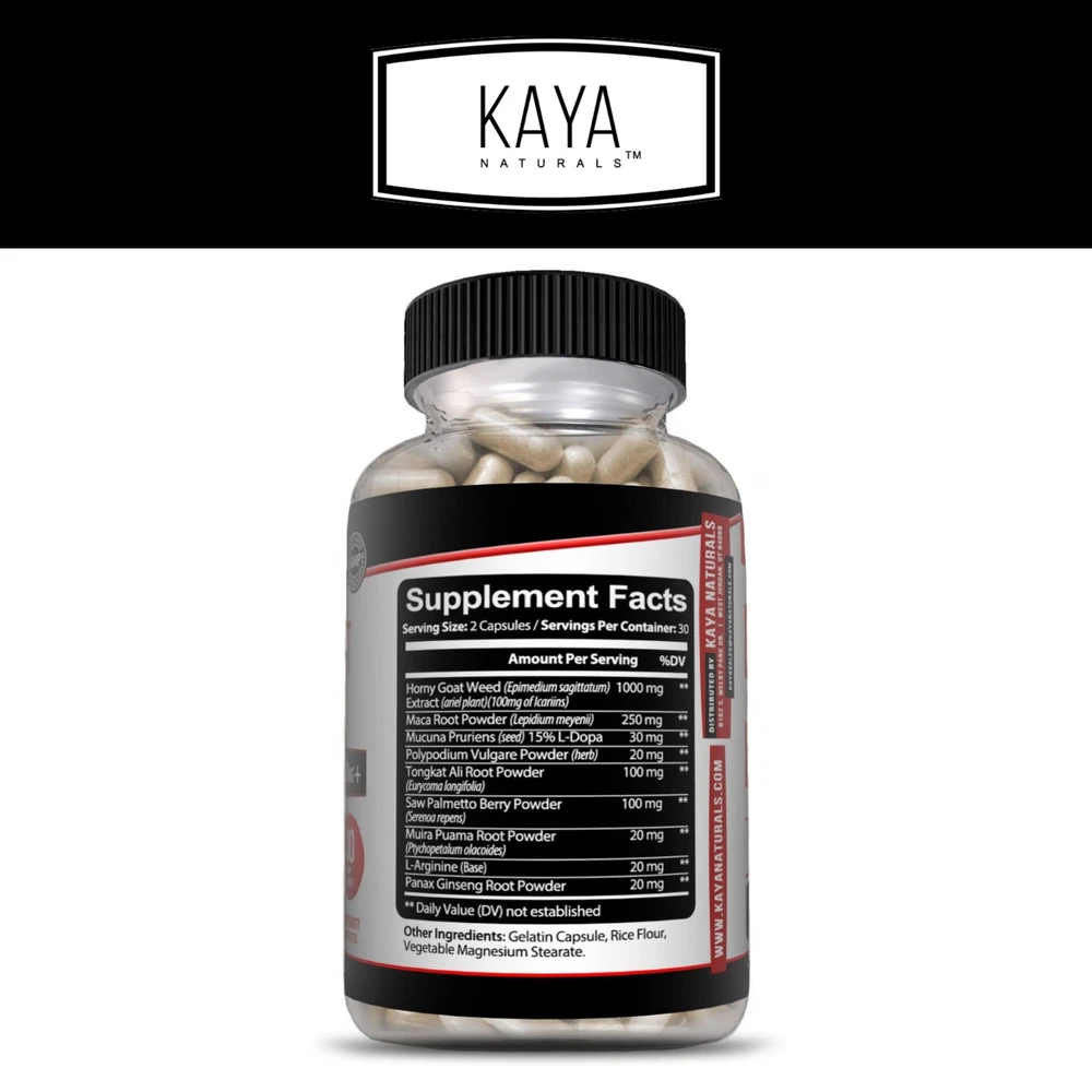 Active Ingredients: L-Arginine, Maca, Panax Ginseng, Saw Palmetto Country/Region of Manufacture: United States Department: Men, Unisex, Women Number of Pills: 60 Expiration Date: On Bottle Features: All Natural, Easy to Swallow, Gluten-Free, GMO-Free, Iron-Free, Shellfish-Free, Sugar-Free, Wheat-Free Item Weight: 2.63 oz MPN: KNHGW60 Main Purpose: Libido Enhancement, Potency, Stamina Formulation: Capsule Brand: Kaya Naturals