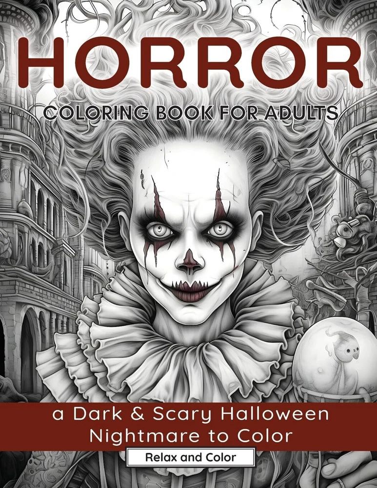 Immerse yourself in a chilling world of horror with 50 unsettling coloring pages in our Horror Coloring Book for Adults - A Dark & Scary Halloween Nightmare. Our Horror Coloring Book is a hauntingly captivating way to delve into the sinister side of Halloween. We've woven together a chilling collection of designs inspired by the dread and intrigue of Halloween, melded with eerie landscapes, menacing characters, and grim festive elements. These intricate designs have been created with mature coloring enthusiasts in mind. You'll experience the eerie pleasure of coloring a blood-chilling haunted mansion, what-nightmares-are-made-out-of- clowns, and even a malevolent specter ready for the haunting hour. If the darker side of Halloween stirs your imagination, and you relish in the shadows, this coloring book will certainly keep you engaged and on edge. A Frightful Relaxation Exercise Coloring is a therapeutic hobby that stimulates focus and relaxation. Our Horror Coloring Book for Adults, along with other themes from our collection, is designed to foster calmness through an engaging, albeit, dark journey. Accommodating for All Skill Levels Our books cater to all, from the novice colorist to the masterful artist. Express your creativity freely on each page - there's no wrong way to explore the shadows and no prior artistic skill is necessary. Embrace Your Favorite Art Tools Our books are compatible with a range of coloring tools such as colored pencils, markers, gel pens, and crayons. Let your creativity guide you - from somber, muted tones to bold and vibrant hues! Individual Prints for Each Design To ensure a smooth and immersive coloring experience, every design is printed on its own individual page to prevent bleed-through. The Perfect Gift for Horror Lovers Our coloring books make unique and thoughtful gifts for Christmas, Halloween, birthdays, or simply as a surprise gift to your horror-loving friends. Share the thrill and creativity of our chilling coloring book with those you know will appreciate it. Scroll up and click buy now and get ready to get scared!