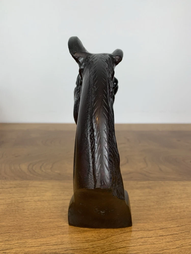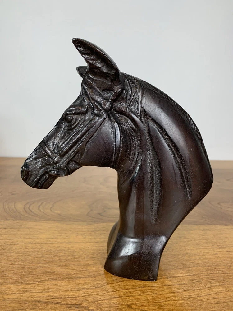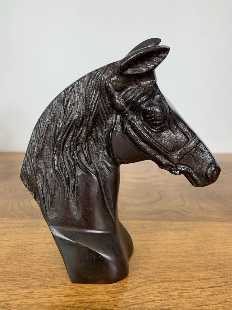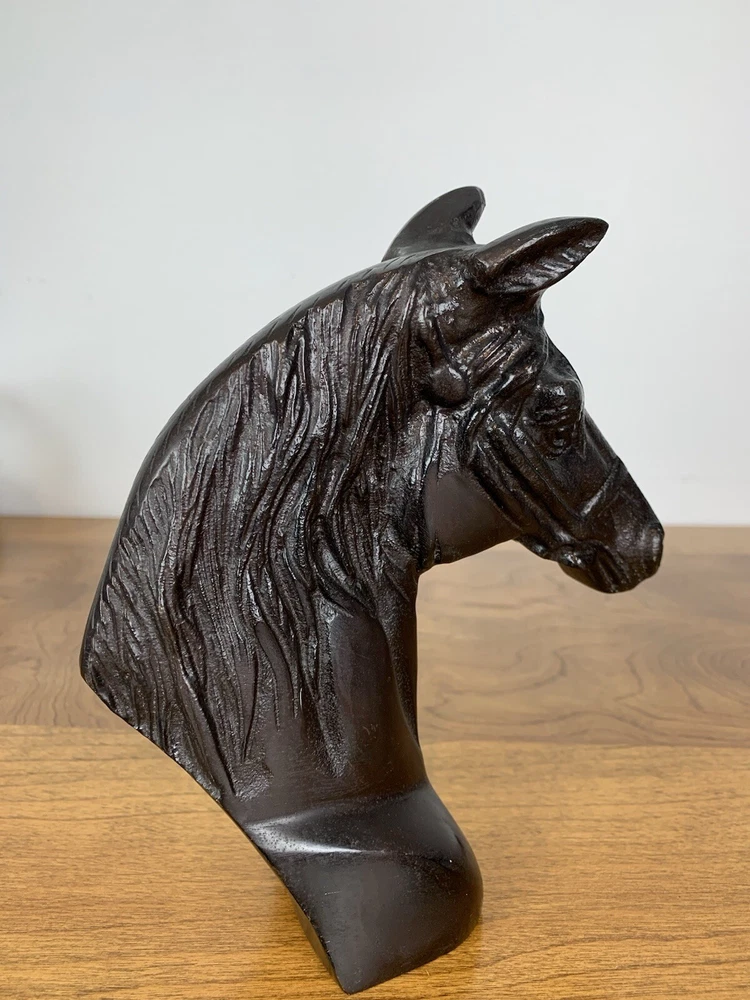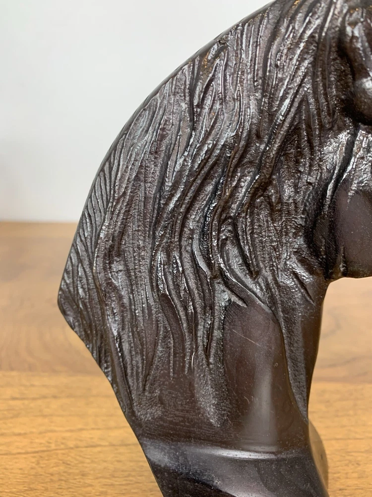 Lovely and detailed sculpture of a horse head. It’s mane is on one side and it’s head is sighlty tilted to one side. It could be attached to a base easily to make it higher. It is in good condition with wear consistent with its age and normal use like minor scratches. Please look carefully at the pictures, they’re part of the description. Measurements in centimeter on the pictures