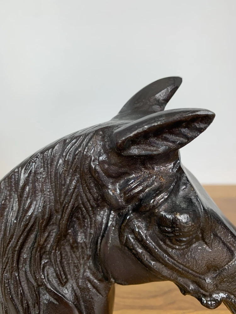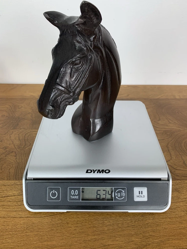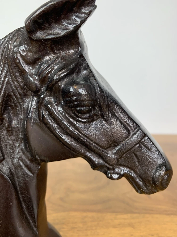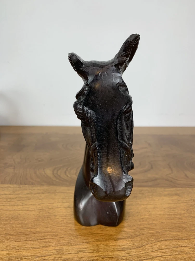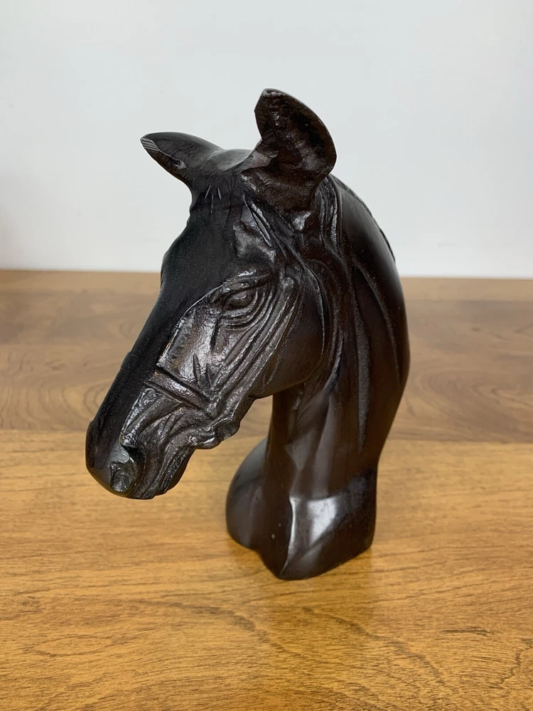 Lovely and detailed sculpture of a horse head. It’s mane is on one side and it’s head is sighlty tilted to one side. It could be attached to a base easily to make it higher. It is in good condition with wear consistent with its age and normal use like minor scratches. Please look carefully at the pictures, they’re part of the description. Measurements in centimeter on the pictures
