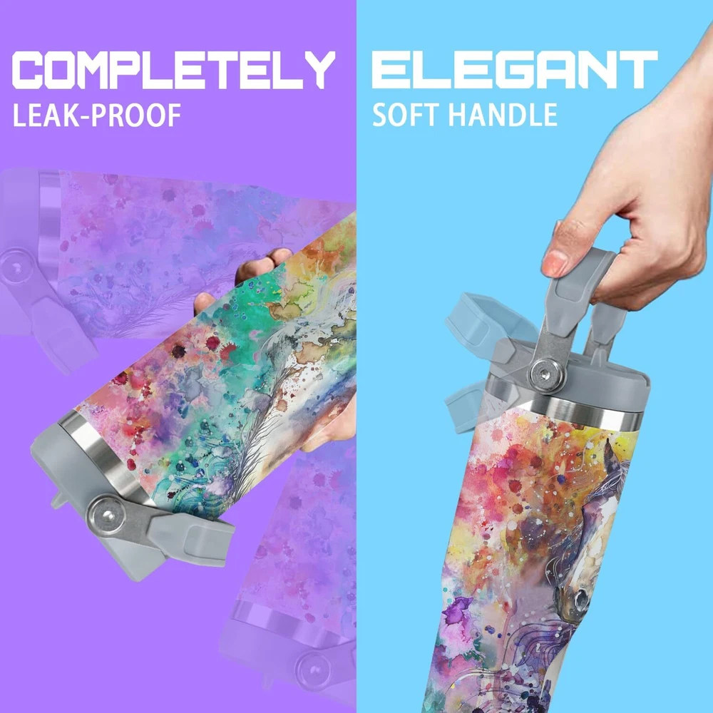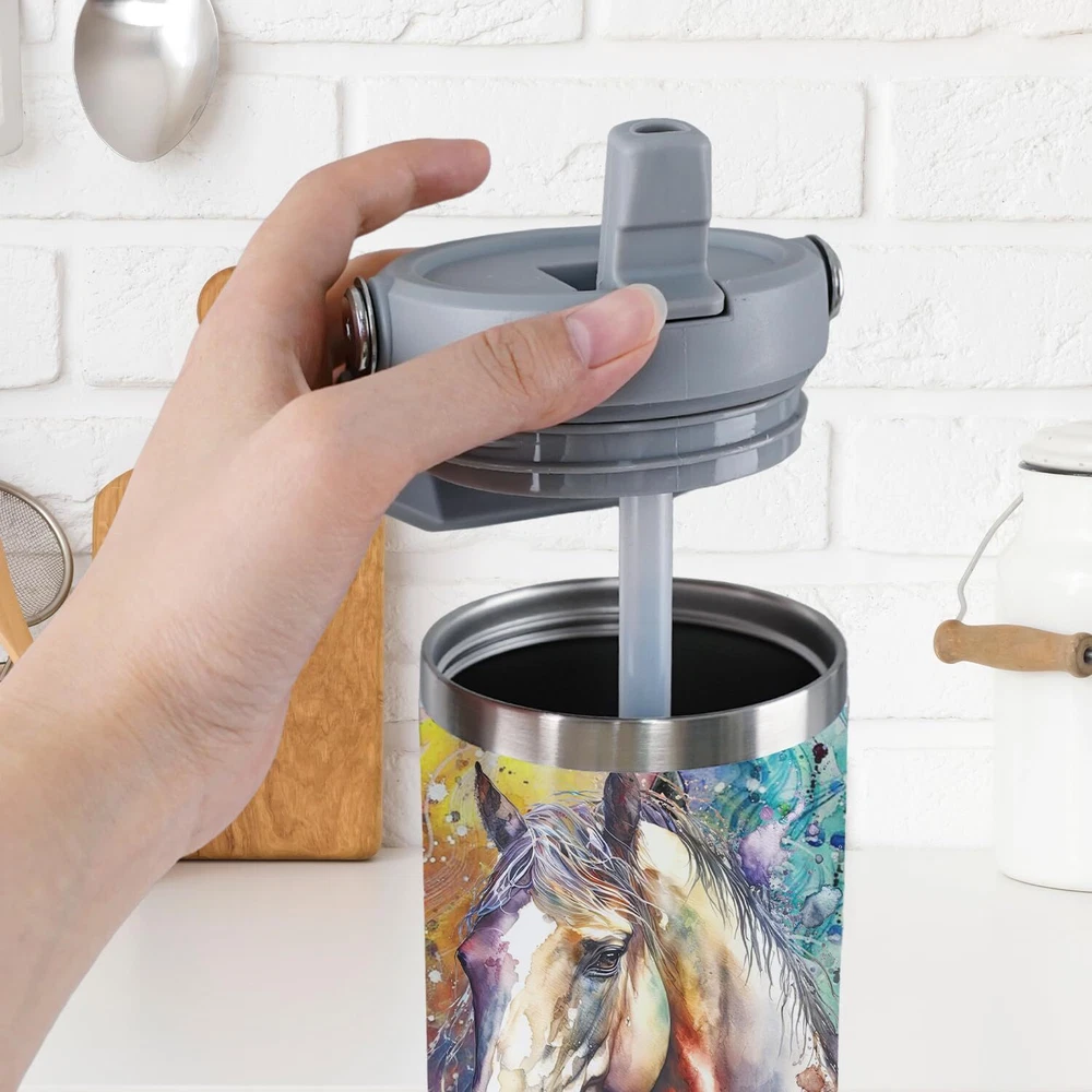 If You Are Still Looking for the Perfect Stainless Steel Insulated Tumbler, I Am Sure This Horse Insulated Tumbler of Ours Will Not Disappoint You! This Insulated Tumbler Carries a Handle and a Lid, Making It Easy to Take with You When You're on the Go. This 30 Oz Horse Insulated Tumbler Also Features a Double Layer of Vacuum Insulation, Which Will Keep Your Coffee Piping Hot for up to 7 Hours and Your Chilled Drinks Cold for up to 14 Hours! Perfect for Enjoying Drinks at Home, At the Lake, At the Office, At Parties, Rv Trips, Cabin Trips, Picnics and More. Enjoy Your Drinking Time Without Worries. It Is Also the Best Gift for Friends and Family, Lovers and Children! Features and Materials: The 30 oz horse insulated tumbler with handle and lid is made of stainless steel and features double-layer vacuum insulation to keep cold drinks cold for up to 14 hours and hot drinks warm for up to 7 hours. The sturdy handle makes it easy to carry your favourite beverage whether you're hiking, commuting or relaxing at home. Spill-Proof Flip-Top Water Bottle: This trendy horse-patterned water bottle features a reversible straw for easy sipping with a simple flip! Flip it again to retrieve the straw and prevent coffee or cold drinks from spilling! Holiday Birthday Gift: Personalized horse pattern, can be used as christmas, thanksgiving day, valentine's day, mother's day or teacher's day as a horse gift for teachers and wives, boyfriends, girlfriends, family members and children, or as a gift for horse lovers. Occasion: Whether it's a big truck, a small car or a suv, this horse tumbler fits in your car's cup holder. Ideal for hot coffee, milk, cold drinks and more! Whether you are working, going to school, traveling outdoors or working indoors, this easy to carry insulated mug is your best choice! Perfect : Whether it's before or after sale, if you have any questions about this horse tumbler, please our seller, we will reply to you as soon as possible to make sure you have a pleasant shopping experience!