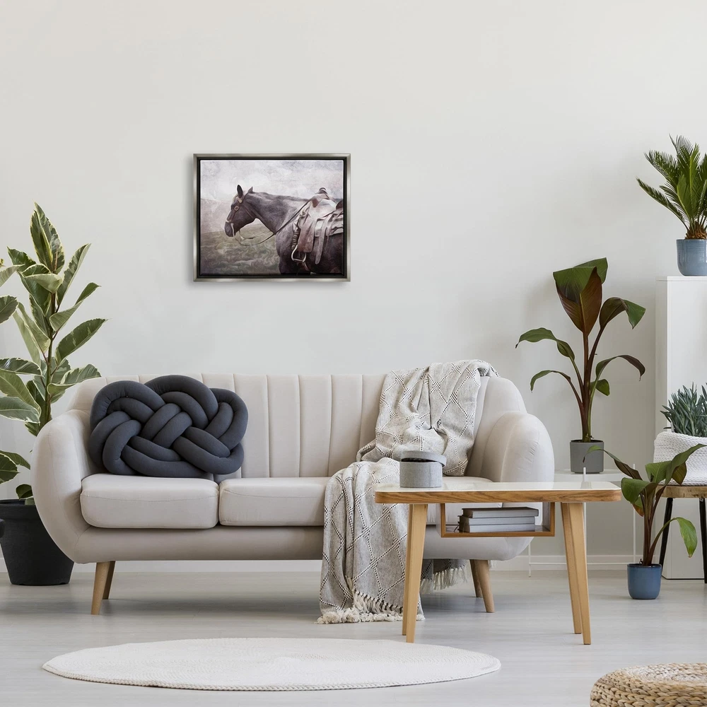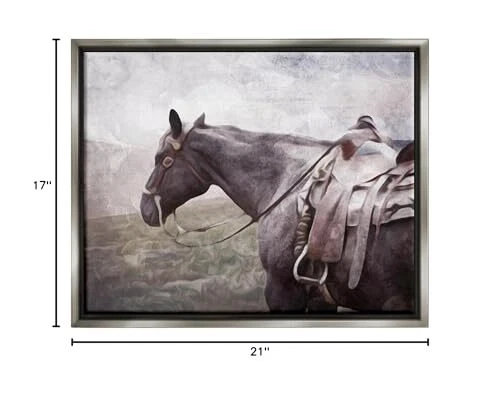 Floating Frame Sizes Include Standard: 21 x 1.7 x 17 Oversized: 31 x 1.7 x 25 Wall Art is Ready to Hang with Hardware Free Hanging. No installation required. For Easy Set Up Lean or Layer Artwork on Shelf or Against Wall. Our elevated 1.7" Thick Floating Frame is the perfect complement to our canvas style Wall Art. We use only the highest quality inks in house with industry leading printing solutions. Canvas is hand stretched over a durable wood foundation and then mounted securly into a Modern Box Frame. Made in the USA. Artwork Relates To: Animal, Horse, Mammal, Saddle, Halter, Stallion, Andalusian Horse Design by Milli Villa