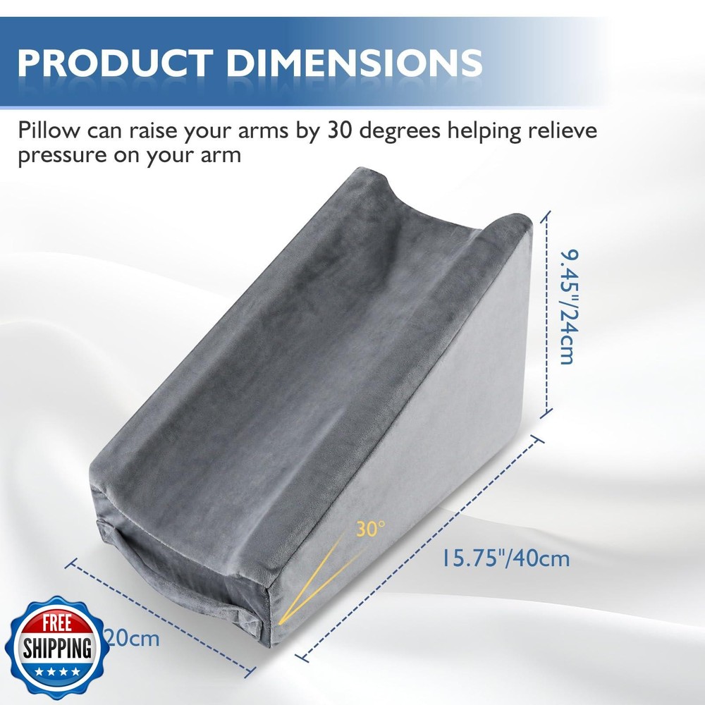 Hossmily Arm Elevation Pillow, Arm Wedge Elevation Pillow Excellent, Ergonomic Elbow Support Pillow for Sleeping Arm Pads Elbow Pillow with Removable Pillow Case-Grey Features Ergonomic Design -Our arm wedge pillow comes in a groove design in the middle, which is ergonomically in line with the human arm curve to elevate your forearm, wrist, and elbow in a comfortable position and give them solid support to reduce pressure on the sore part and promote faster recovery. Memory Foam Material -Our arm rest pillow is made of high-density foam material and super soft crystal velvet, It's firm enough to keep its shape but soft enough to provide comfortable support while sitting or sleeping. Removable Cover -Our arm elevation pillow cover is made of high quality fabric with easily removable zip, soft breathable and machine washable. Portable handle makes it easy to carry anywhere. Size - Measuring 15.57”x 9.4”x 7.9”. It comes with the right height and desirable inclination, keep wedge outlines along the natural curves of arms, takes the excess pressure off your forearm, wrist, and elbow, and provides a comfortable resting place for your arms while you sleep. Wide Application -Our arm support pillows can be used for multiple place, such as at home and in offices. You can use it to support your wrists and arms on beds, tables, tables, etc. The arm support pillow is vacuum packed. Allow 48 hours for full expansion. Shipping Free & Fast Shipping: We offer free shipping to most of the USA with a normal delivery time of 3-7 days. However, due to the current situation, additional delivery time (up to 3 weeks) may be required for some items. Alternative Carriers: We may use alternative carriers (e.g., USPS, FedEx, UPS) to ensure your package arrives safely and on time. Due to the use of multiple carriers, we are unable to provide a tracking number automatically. Handling Time: Orders are processed and shipped within 1-2 business days of receiving cleared payment. Shipping Restrictions: Shipping to Alaska, Hawaii, Puerto Rico, Guam, and other US territories may incur shipping charges or delivery restrictions. Please contact us before ordering, or your order can be refunded/cancelled. State Restrictions: Certain items may not be shipped to California due to state regulations. Contact for Tracking Updates: If you require tracking updates or have any concerns about the delivery of your order, please feel free to contact us, and we will be happy to assist you. Return Policy 30-Day Hassle-Free Returns: If you are not completely satisfied with your purchase, you can return the item for free within 30 days of receiving it for a full refund or exchange. Easy Return Process: Contact us, and we will provide you with a prepaid return shipping label and detailed instructions. No Restocking Fee: There are no restocking fees for returns. However, the buyer is responsible for return shipping costs if the return is not due to a seller"s error. Refund Processing: Refunds will be processed within 1 business day of receiving the returned item in its original condition. Feedback Your feedback is extremely important to us. We strive to provide the best products and customer service possible. If you are satisfied with your purchase, please take a moment to leave us a positive review. If you have any concerns or issues with your order, please contact us before leaving negative feedback. We are committed to resolving any problems and ensuring your satisfaction. Contact Us If you have any questions or concerns, please feel free to reach out to our customer support team. You can contact us through the eBay messaging system. We are available Monday to Friday, 9:00 am to 5:00 pm EST, and we will do our best to respond to your inquiry within 24 hours. Thank you for supporting our small family business!