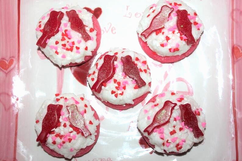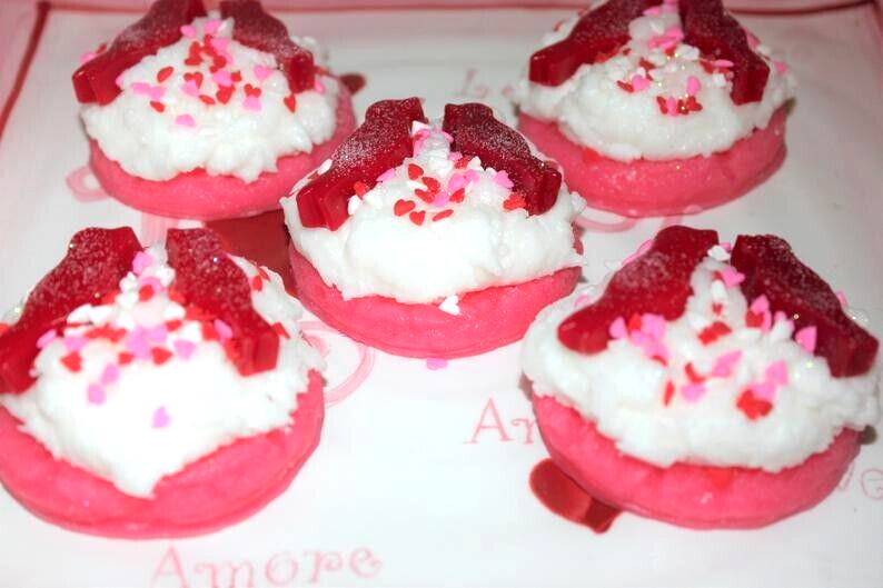 I CAN MAKE THESE ANY SCENT I STOCK SO FEEL FREE TO CONTACT ME FOR A SCENT CHANGE **** SHIPPING IS OFTEN CALCULATED HIGH WHEN PURCHASING MORE THAN 1 ITEM SO FEEL FREE TO MESSAGE ME FOR A SHIPPING QUOTE **** When combining purchases please click on "request total from seller" at checkout and wait for me to send you a invoice with combined shipping. If you are using your phone this option may not be available and if so just message me and I can make you a listing with everything combined and the correct amount on shipping. Thank You ;) This is my handmade highly scented wax tart set that is made with a special blend of paraffin wax that allows me to add up to 10% more fragrance than most waxes. These yummy cookies are scented to the max with RED HOT CINNAMON. WOW! This is a strong bold cinnamon scent and will remind you of the little red hot cinnamon candies. They measure 2 1/2" x 2 " tall approx. and you will receive 5 of them. They have lots of creamy frosting with glittery red love birds and heart confetti sprinkles on top . (Bowl is not included.) They look so cute displayed and make great unique gifts for . Please be sure to check my other listings for terrific smelling candles and tarts to go with your order. I am always happy to combine auctions to save you money on shipping fees too! International Buyers : Please contact me for shipping quote. Shipping I strive to ship within 48 hours of payment received not including weekends and holidays. I ship USPS Priority or Parcel Post and for the heavier orders I can ship Fed-Ex. I do offer USPS Flat Rate shipping as well. Insurance is the buyers responsibility. I am always happy to combine auctions to save you money on shipping fees and I only change actual shipping costs. Please email with any shipping questions or quotes if needed. Thanks for stopping by! Please do come back again soon~*** Please note I do not accept returns for used merchandise. Must be returned in same condition as received. *** RETURNS ARE ONLY ACCEPTED IF ITEM HAS BEEN MISREPRESENTED