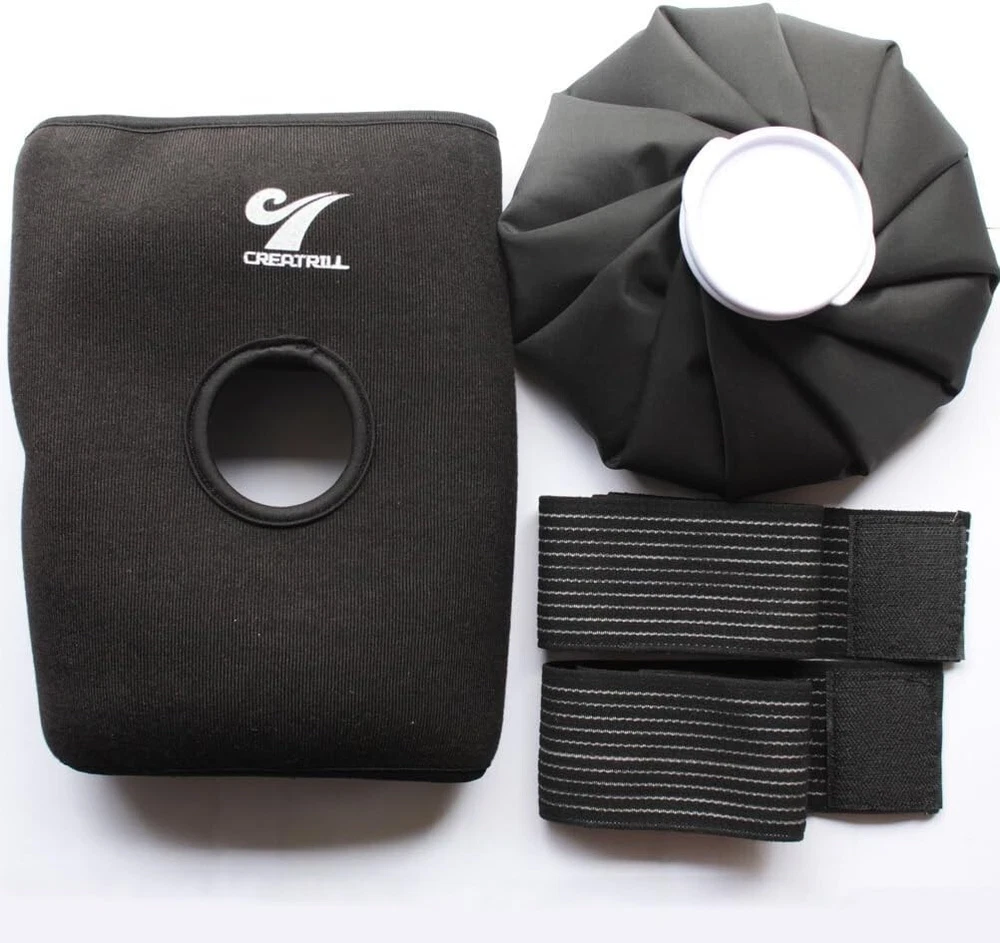 Hot Cold Therapy Ice Bag Pack (9") Neoprene Core Wrap with Elastic Strap, Portab Description : Ideal for acute and chronic injury recovery & rehabilitation with hot/cold therapy available. Cold therapy applies in symptoms of Swelling and inflammation, Bruising, Pain, etc.; Hot therapy applies in Healing, Joint/muscle stiffness, Pain, etc. Top quality therapy Wrap (22.8" * 10.6") provide you with the most comfortable form fitting therapy possible. It is constructed from imitated velvet surface, latex free & durable neoprene core and two elastic bands (23.6" to 37"). Large designed size is ideal for treatment of rotator cuff, shoulder, back and knee pain; etc. Highest quality reusable & economical ice bag (9") is Non-toxic, insipidity, safe and easy to use. It is made of waterproof, soft touch rubberized fabric, superior leak resistant cap with large cap opening to allow for easy filling of ice cubes or crushed ice, and pleated fabric design enables the ice bag to contour around any body part.