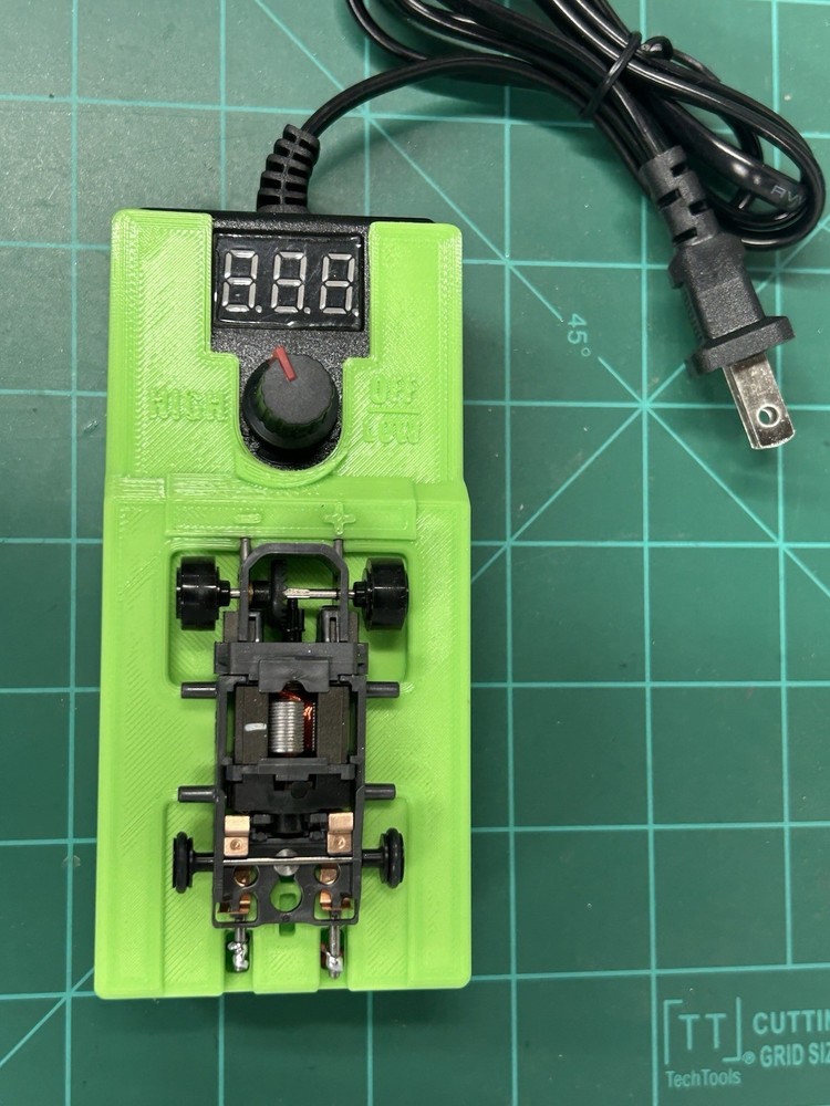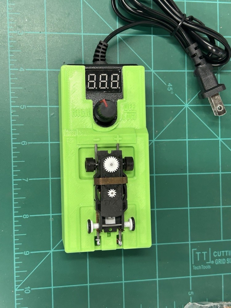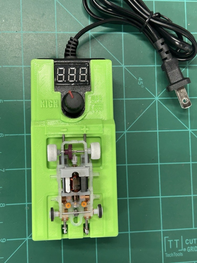 Brand new just released HOT GREEN COLOR break in stand with built in Adjustable power supply 3-23 volt 1 amp for slot car break in warm up test n tune Condition is New . Shipped with USPS this is for a green one see other listings for other colors