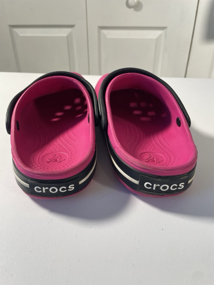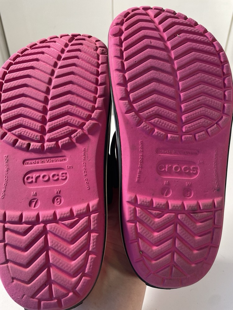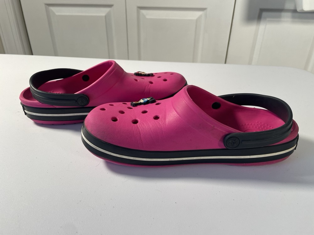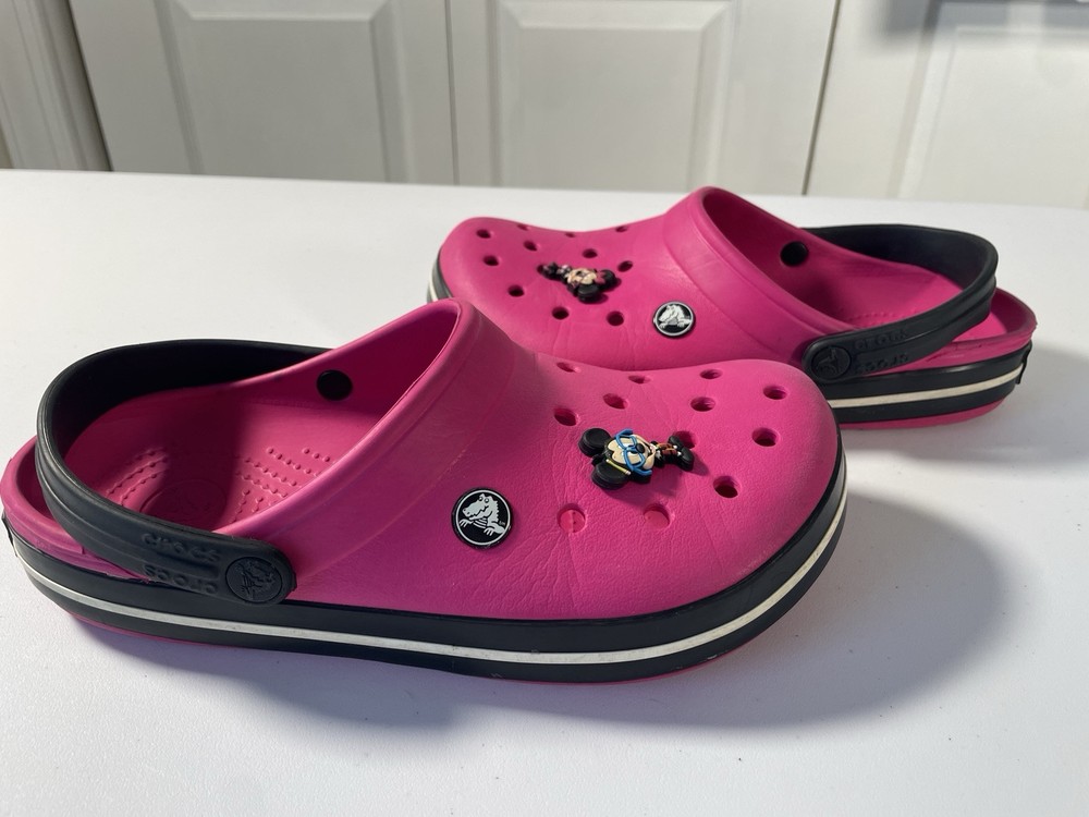 Crocs Hot Pink Black Sole Mickey Minnie Mouse Jibbitz Women’s Size 9