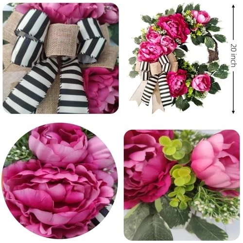 This stunning pink peony wreath is absolutely gorgeous—the vibrant blooms and lush greenery make it pop! The farmhouse-style bow adds the perfect rustic-chic touch. It arrived quickly, well-packaged, and looks even better in person. Perfect for brightening up my front door with a romantic, elegant vibe. Highly recommend for weddings, farmhouse decor, or just a cheerful seasonal upgrade!